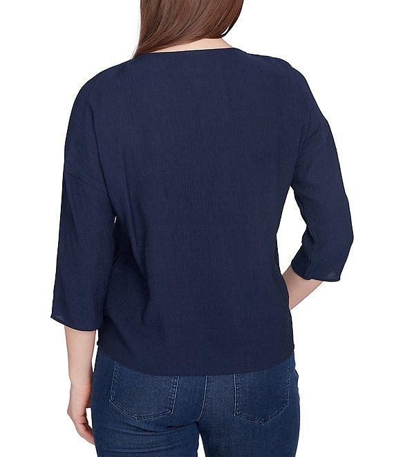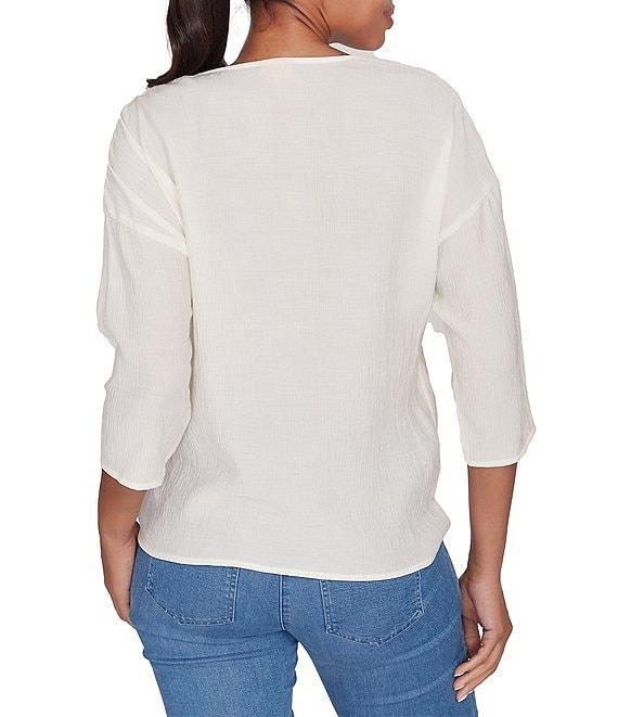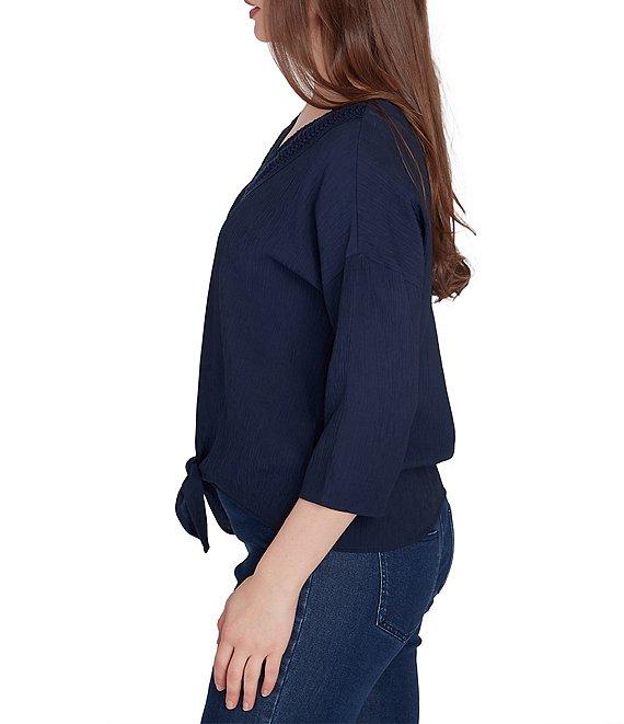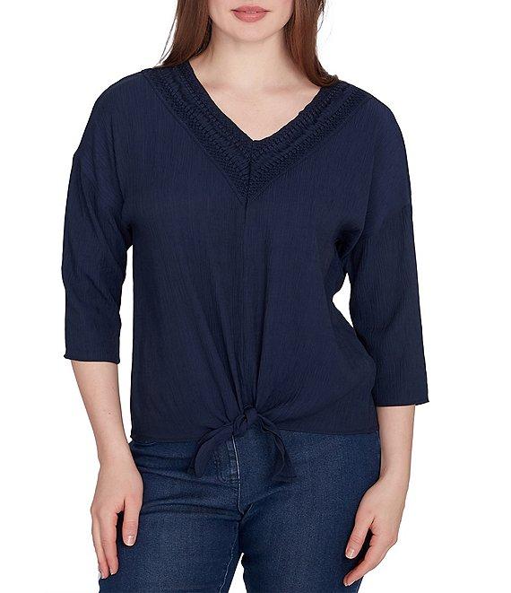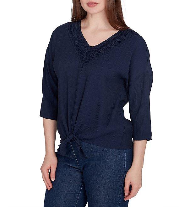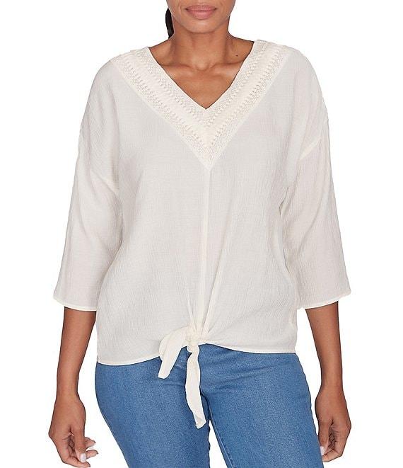 Ruby Rd. Woven Gauze V-Neck 3/4 Sleeve Tie-Front Top