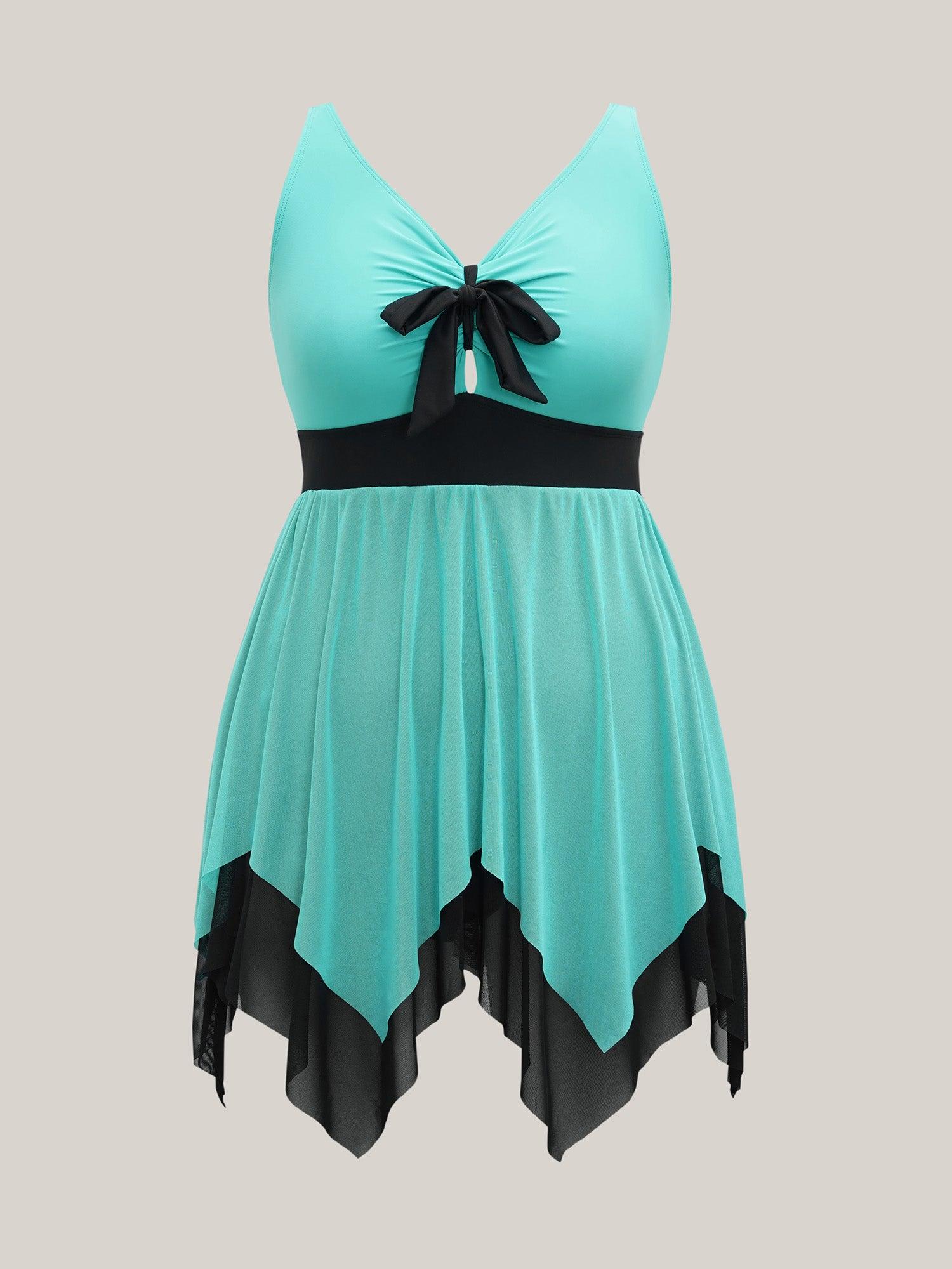Shop Ruched Adjustable Bust Tie Swim Dress now and redefine your style with confidence at BloomChic. Tailored for mid and plus-size women. This trendy Swimwear Women, sizes 10-30. Color:Turquoise;Style:Beach Vacation;Cup Type:Removable cups;Coverage:Full;Neckline:U-neck;Sleeve Type:Sleeveless;Prints:Geometric & color block;Details:Tie knot, Asymmetrical, Gathered;Pocket:No-pocket;Belt:No-belt;Chest pad:Removable Padding;Lining:Lining;Closure Type:Non;Structural function:Cinched & Flared,Full Coverage,Adaptive-Fit;One-piece or split swim dresses:Built-in bottoms