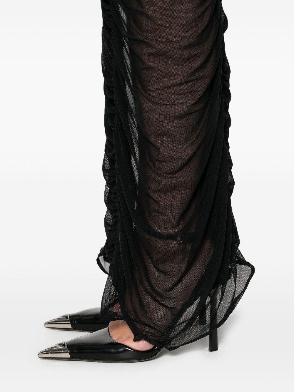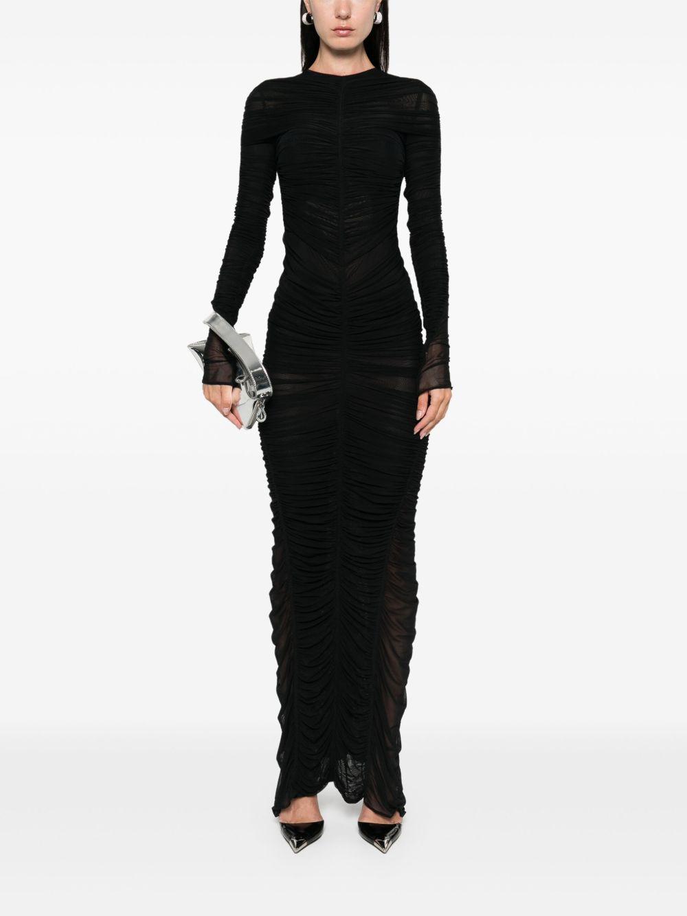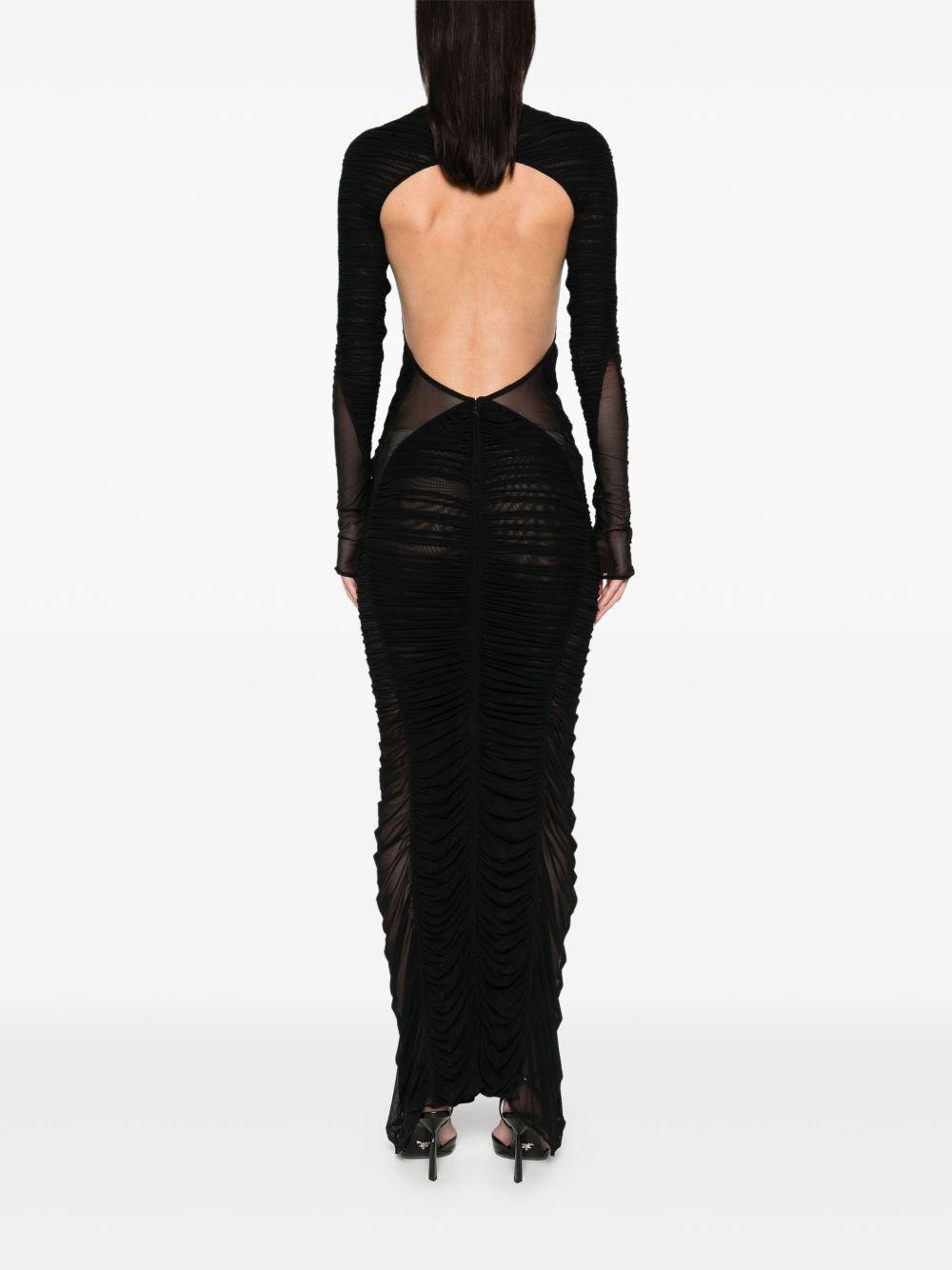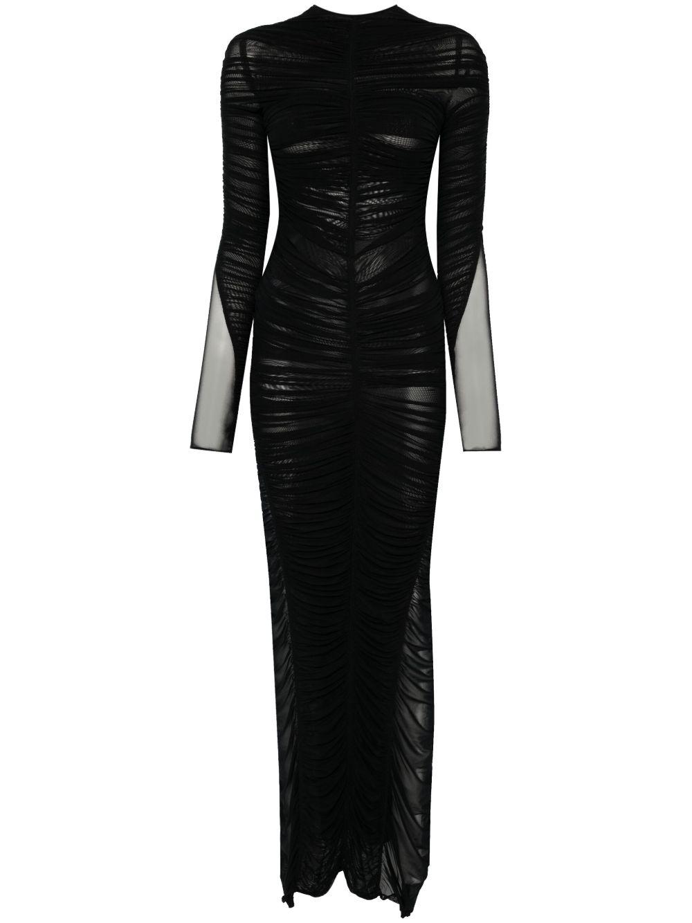 Mugler ruched maxi dress | Black | black | stretch-design | ruched bodice | semi-sheer construction | draped detailing | rear hook and eye fastening | crew neck | long sleeves | open back | unlined | asymmetric hem | Polyamide/Elastane | Cocktail & Party Dresses | Dresses | Clothing | Women
