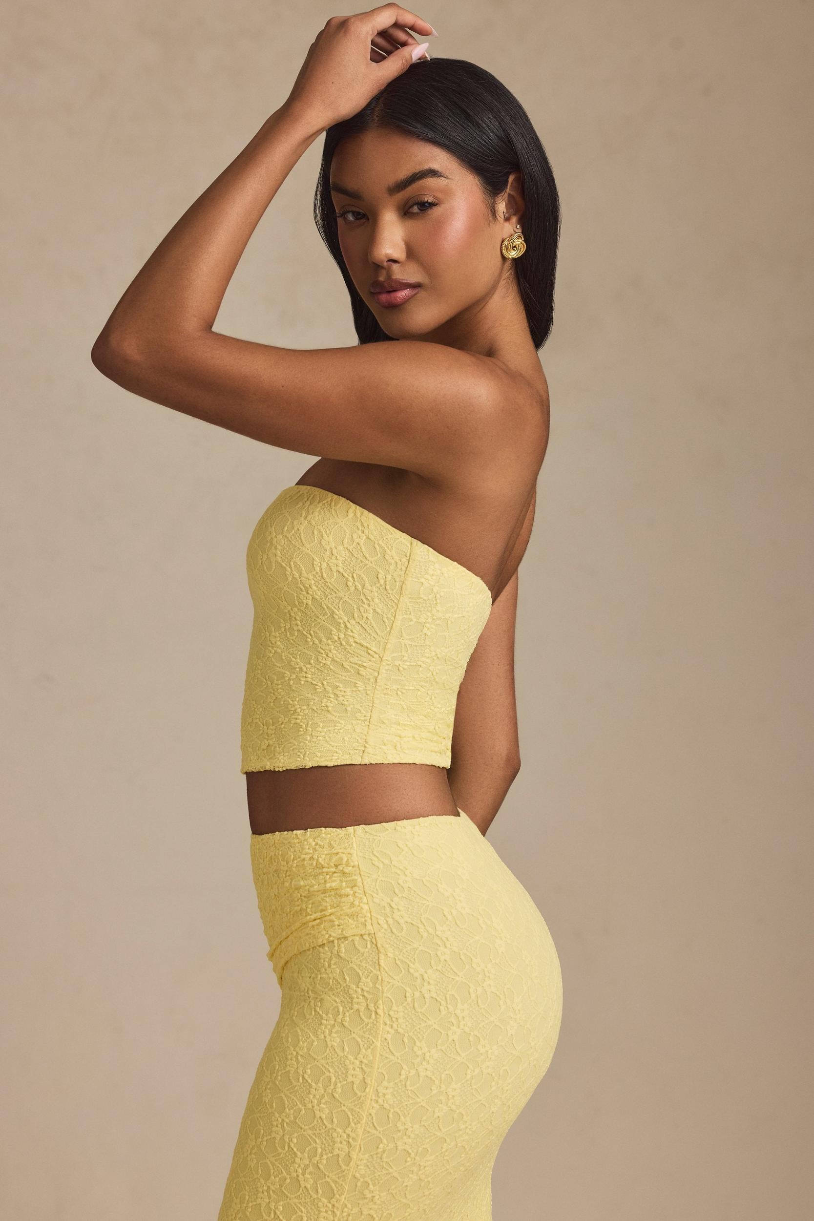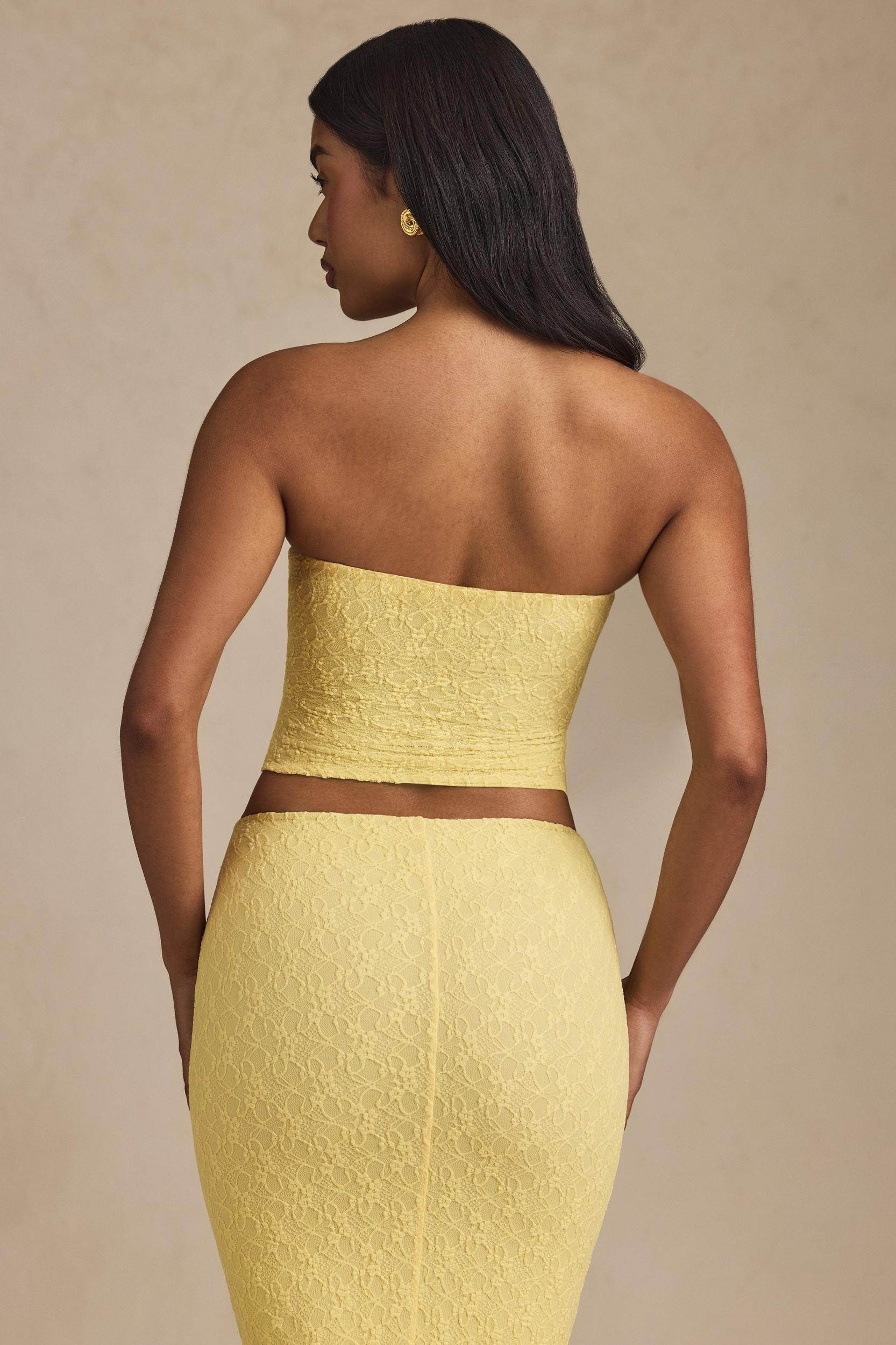 Romance meets pretty details with the Tamia top. The perfect staple with a delicate twist, it’s crafted from premium stretch lace with a sheer jersey lining for enhanced comfort and cut to a minimalist square-neck silhouette. It’s complete with detachable, adjustable straps for custom styling and your perfect fit.Bandeau neckDetachable, adjustable camisole shoulder strapsRuched detailingPull-on designBodycon silhouetteWe recommend styling with our Intimates collection for enhanced coverageSlightly cropped length, SNP to hem approx. 47cm based on a size SProduct code: 14105