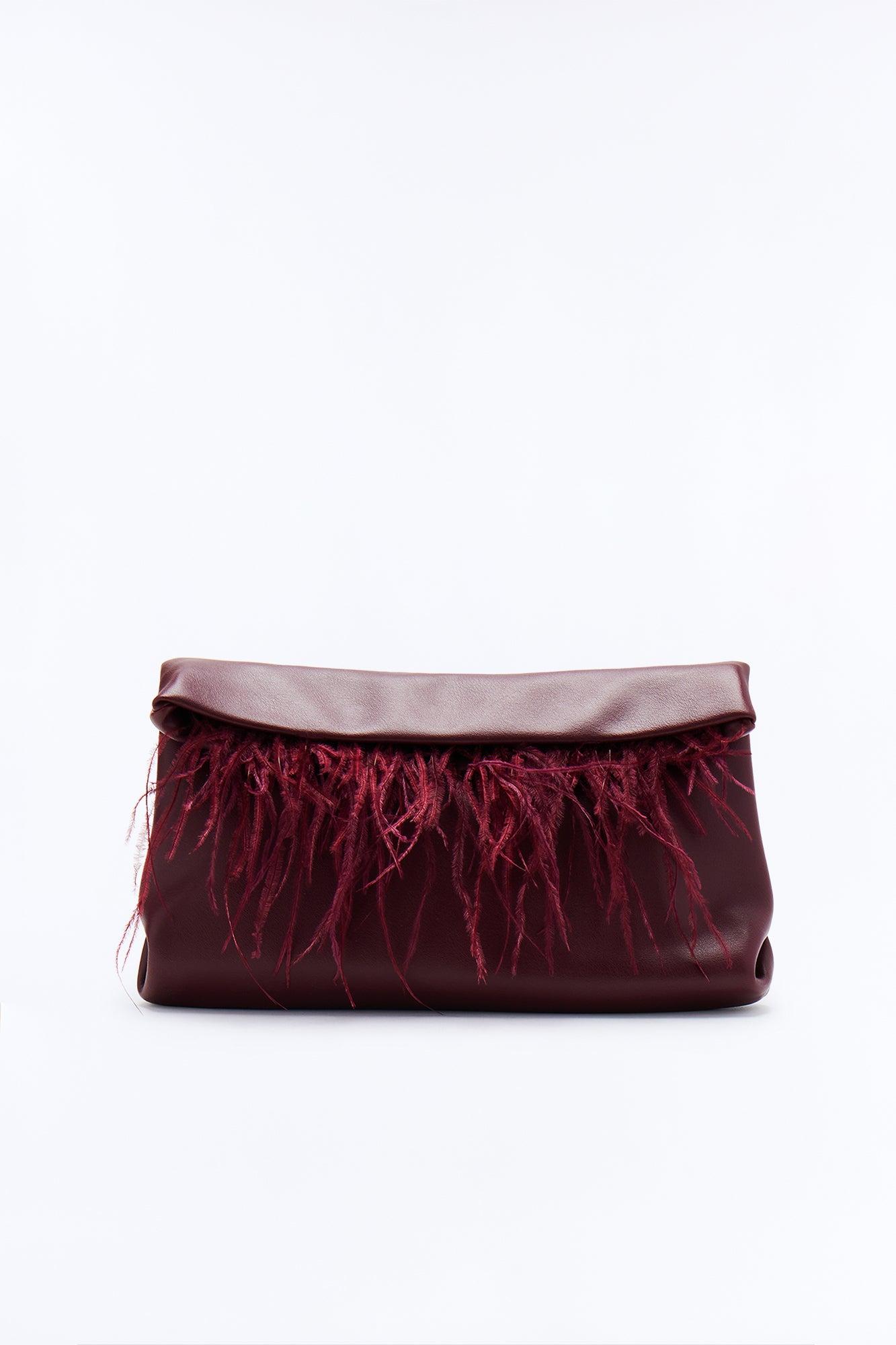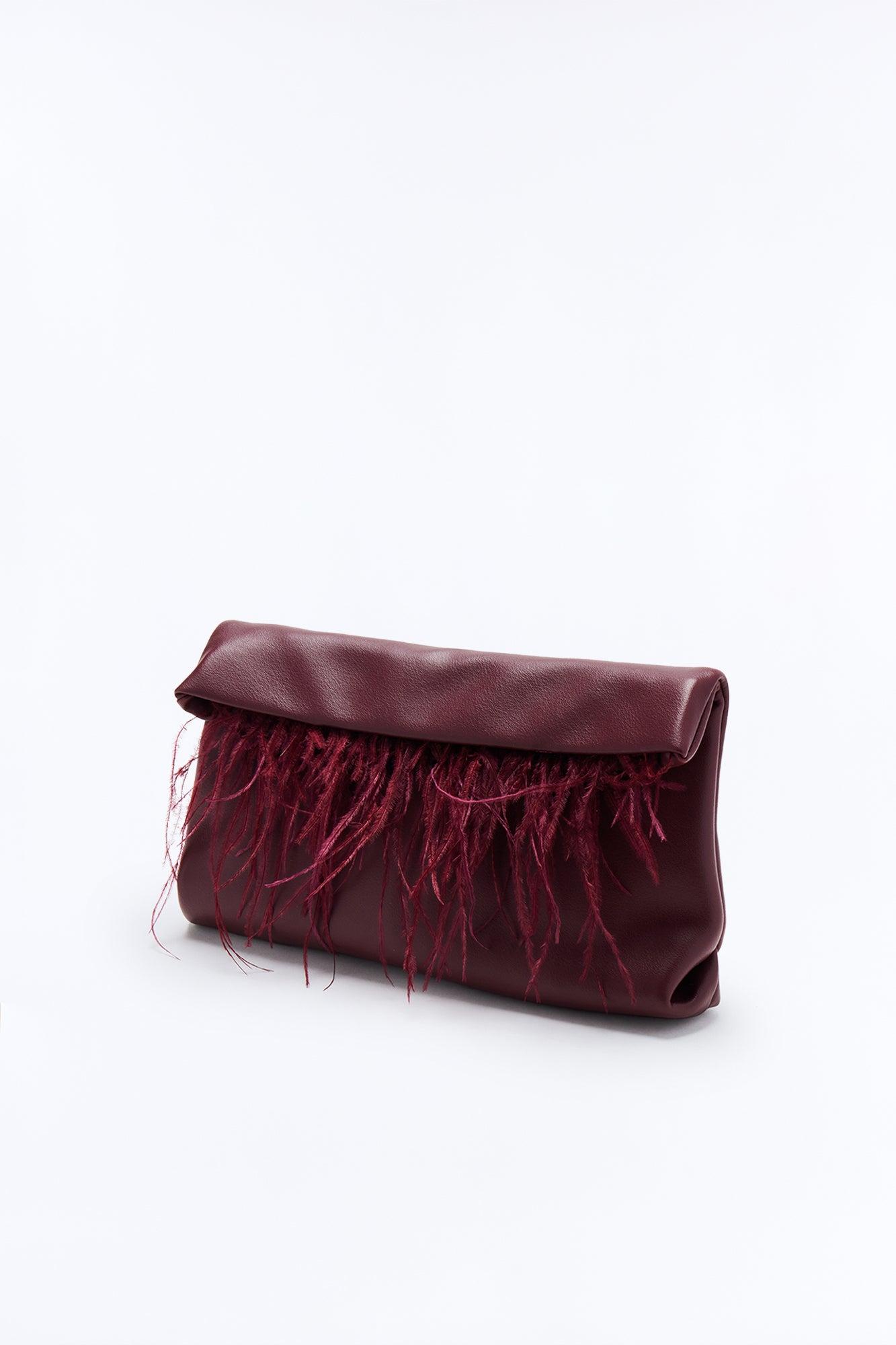 Ruffle Some Feathers Faux Leather Clutch - Burgundy Female