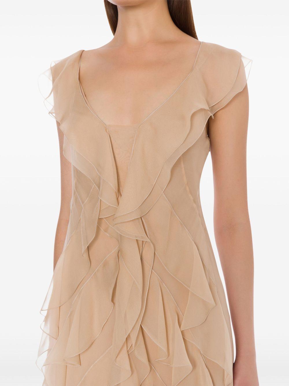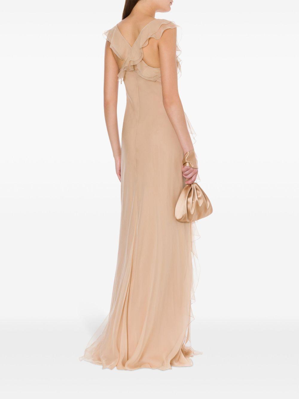 Alberta Ferretti ruffled gown | Neutrals | beige | silk | scoop neck | cap sleeves | ruffled detailing | rear criss-cross straps | maxi | Silk | Evening Dresses | Dresses | Clothing | Women
