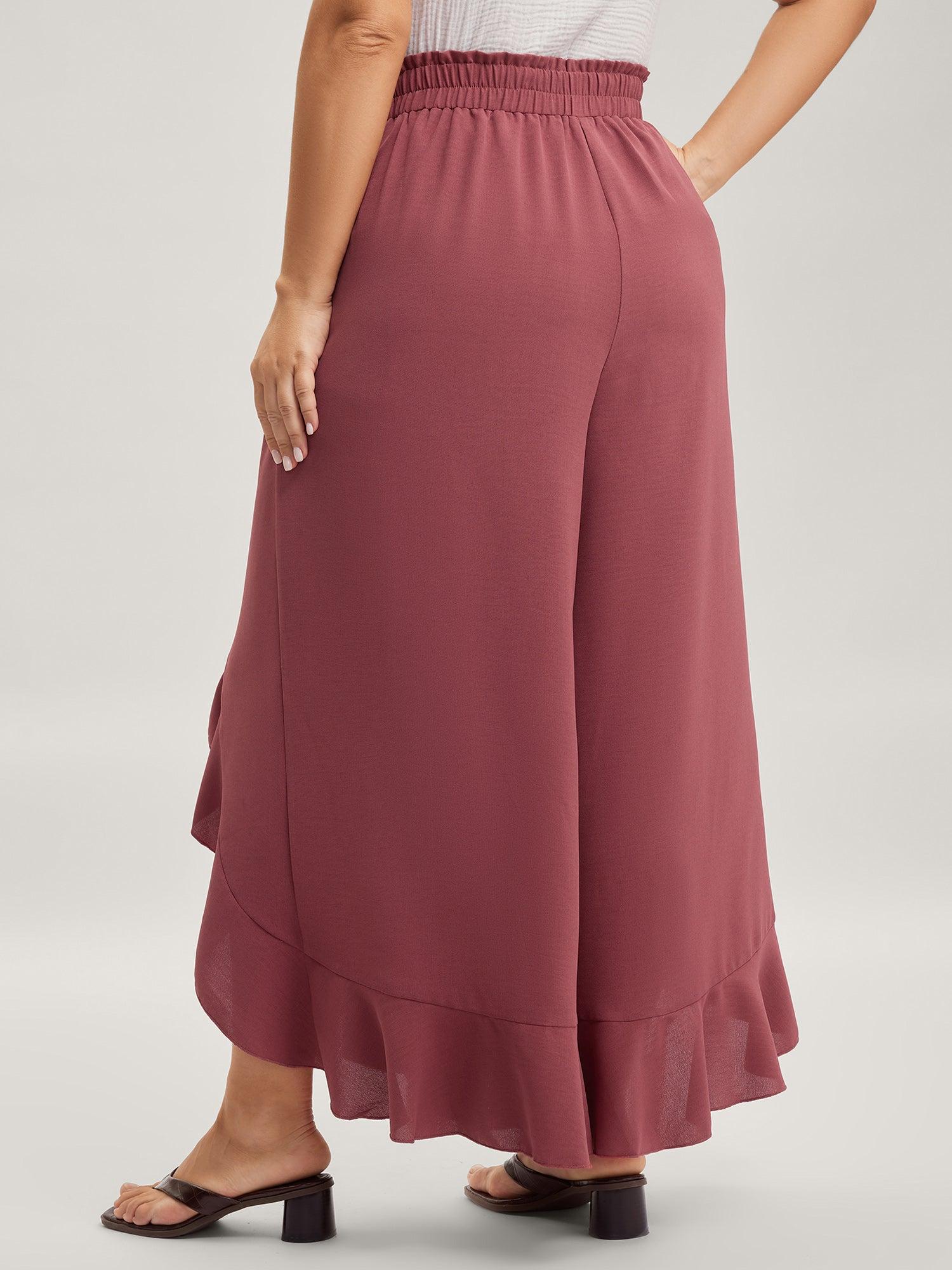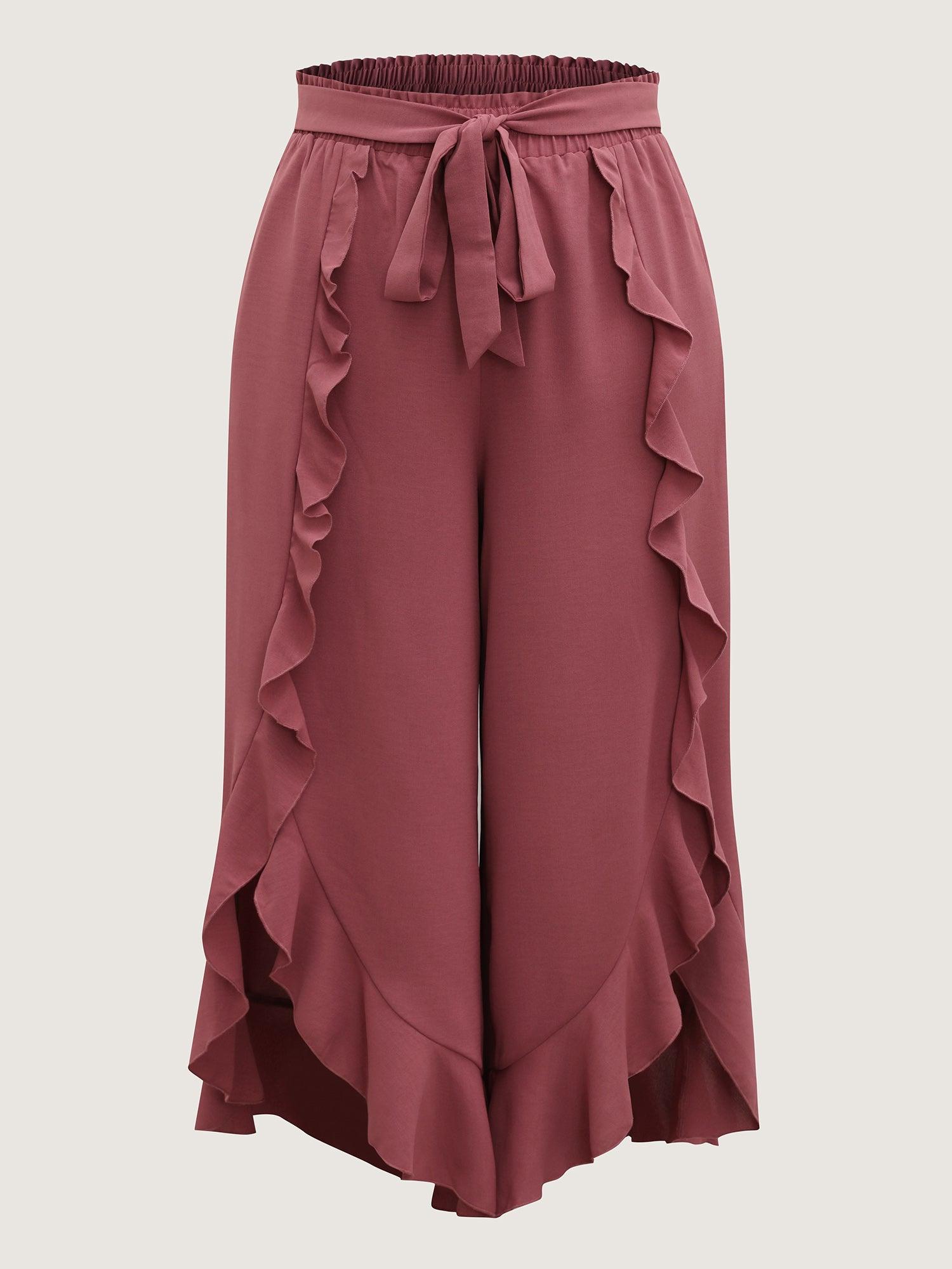 Ruffled Hem Waist-Tie Wide-Leg Pants Female