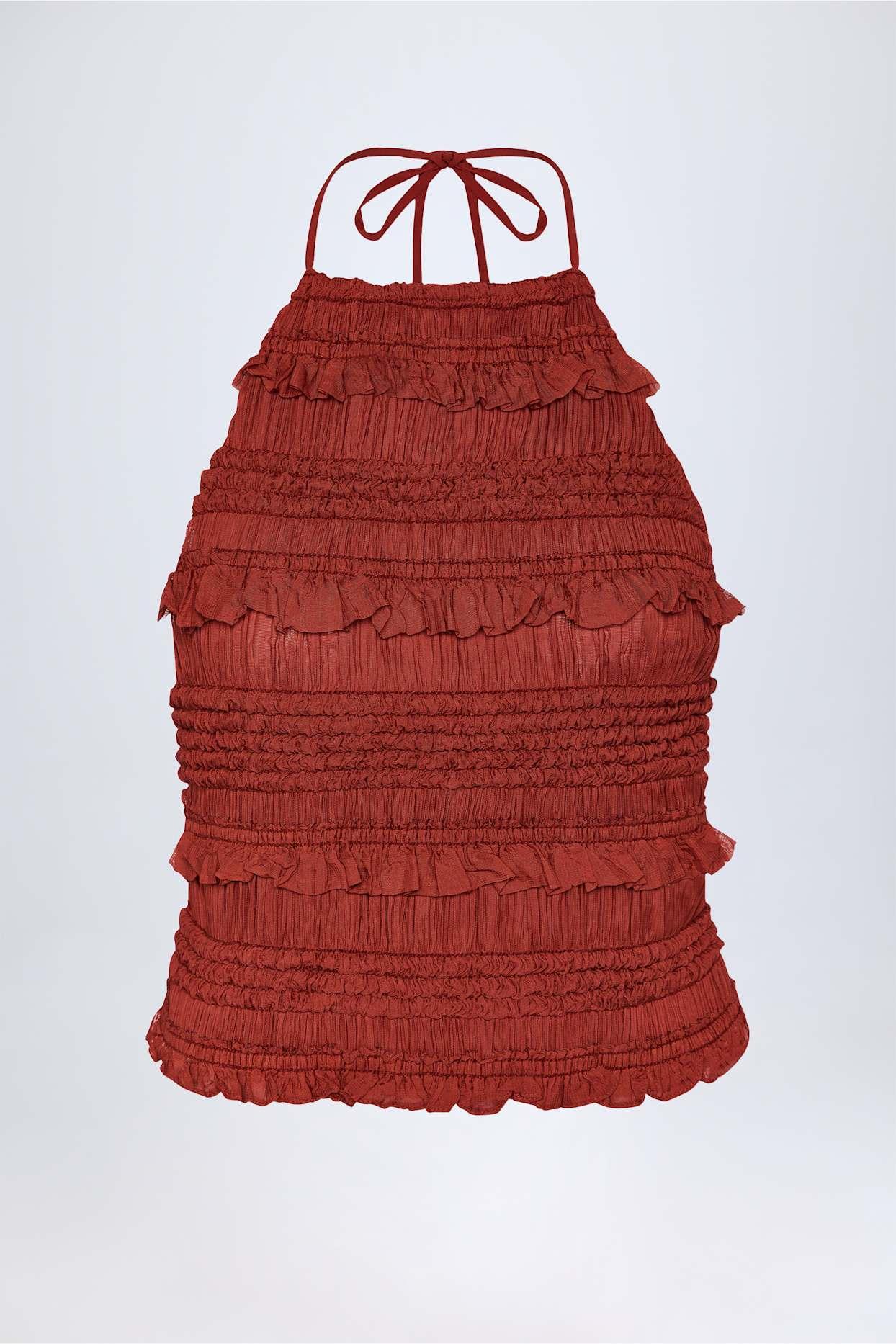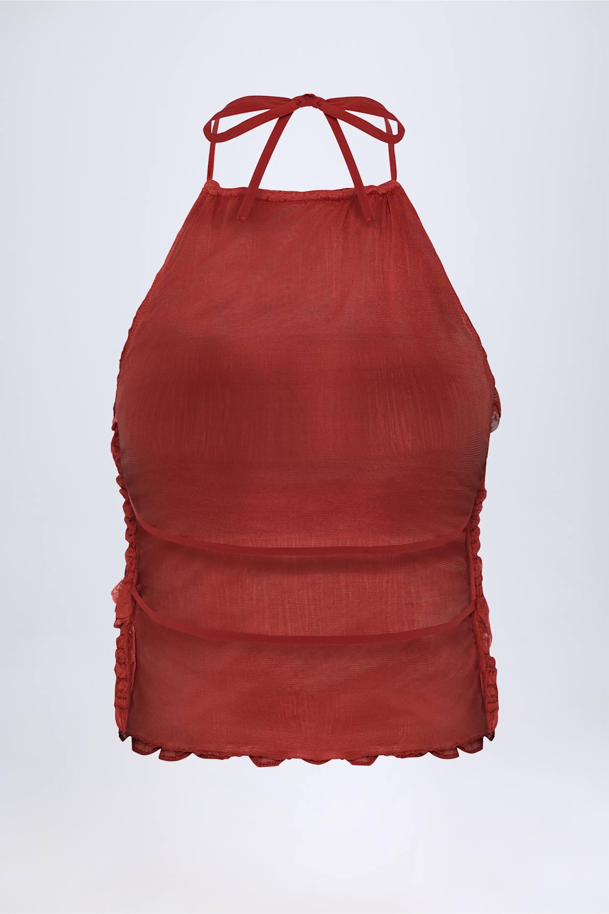 If you love details as much as we do, you’ll love the Natesha top. It’s crafted from our premium, custom-designed textured mesh elevated with cutesy ruffle trims for a statement look. Cut to a high-neck silhouette, it features an open back with two slender straps and a halterneck tie fastening for your perfect fit.High neckAdjustable halterneck strapRuffle trimsOpen back with slender strapsPull-on designBodycon silhouetteSlightly cropped length, SNP to hem approx. 40cm based on a UK size 8Product code: 13695