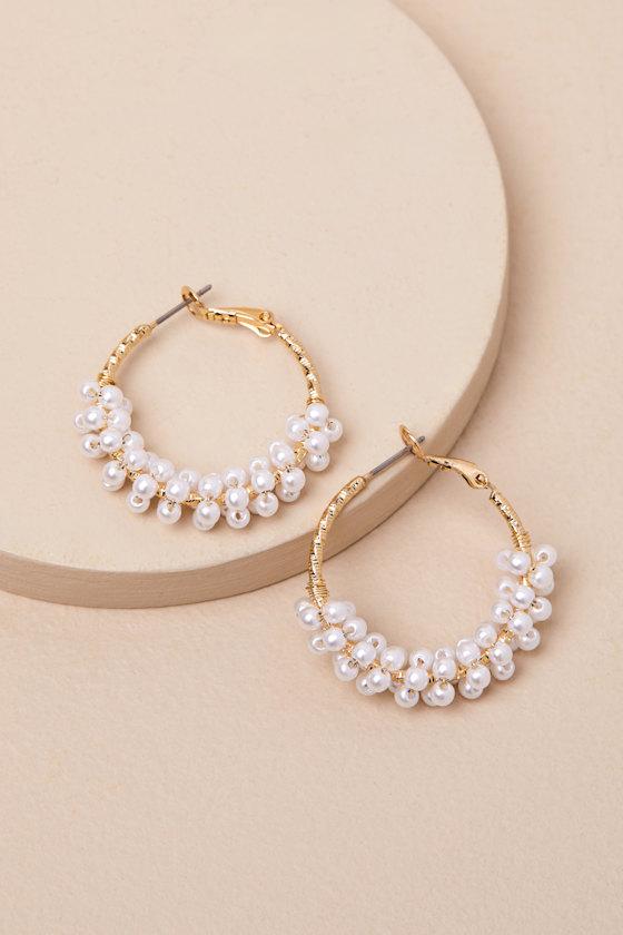 Rulanda Gold and White Pearl Hoop Earrings
