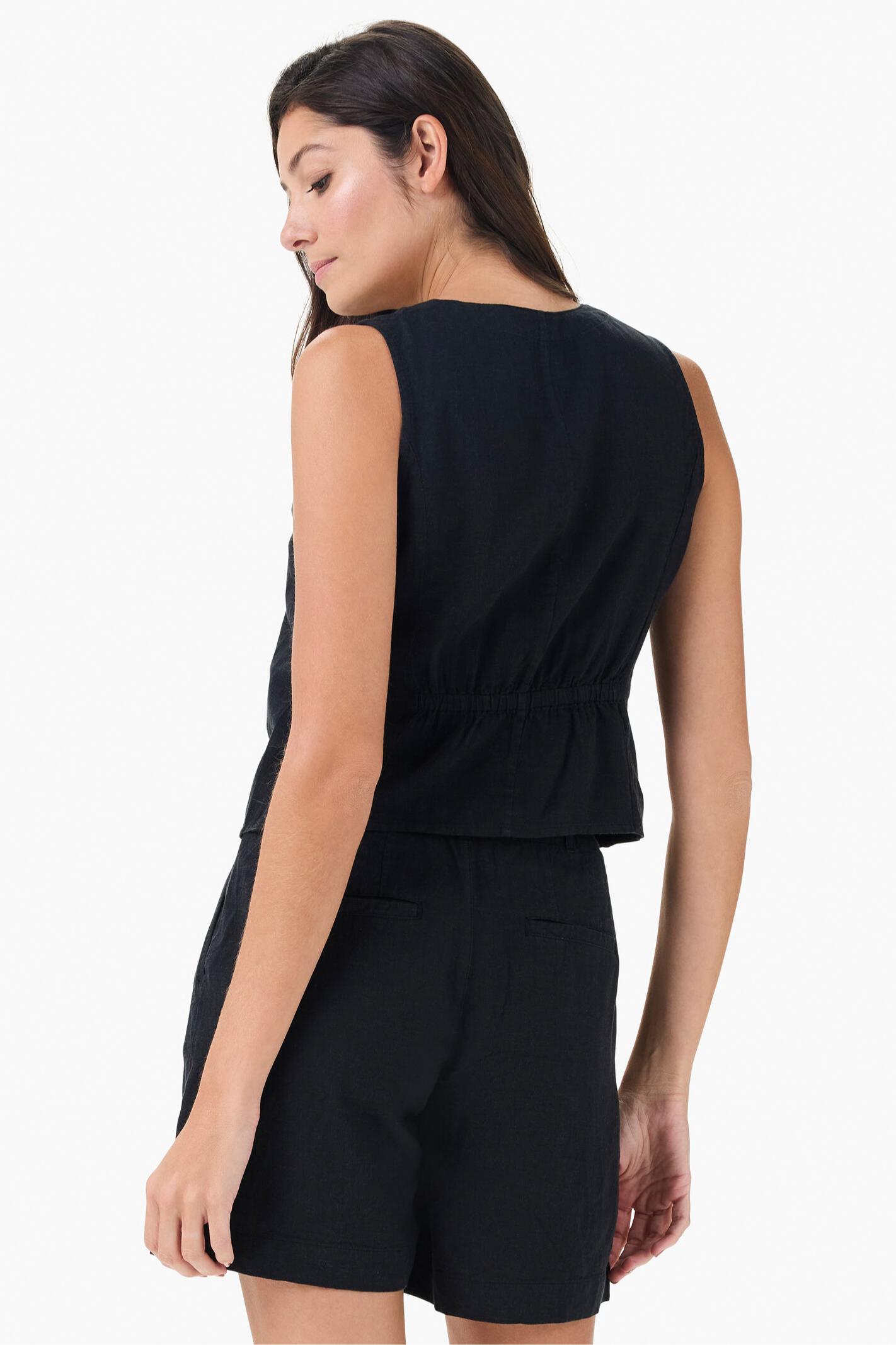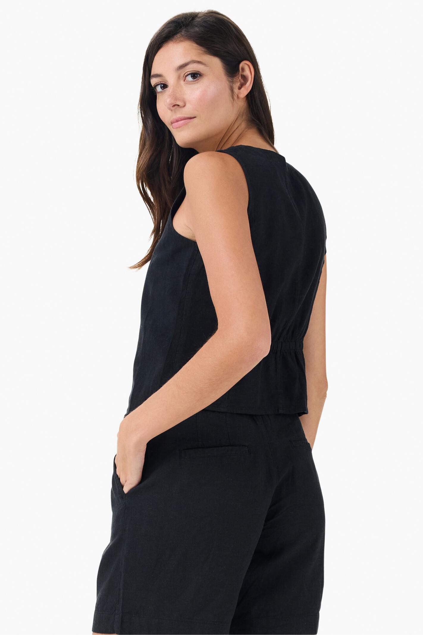Sleek, polished, and oh-so easy. Who needs sleeves to make an outfitting impact? The vest as a top look is a chic dress up or down option on top of linen, colorful denim, or work pants. Ours is super comfortable thanks to the breathable, drapey linen blend. With a button front and a hem that sits at the hip. A more fitted silhouette, perfect for wearing under your favorite blazer or fashion jacket
