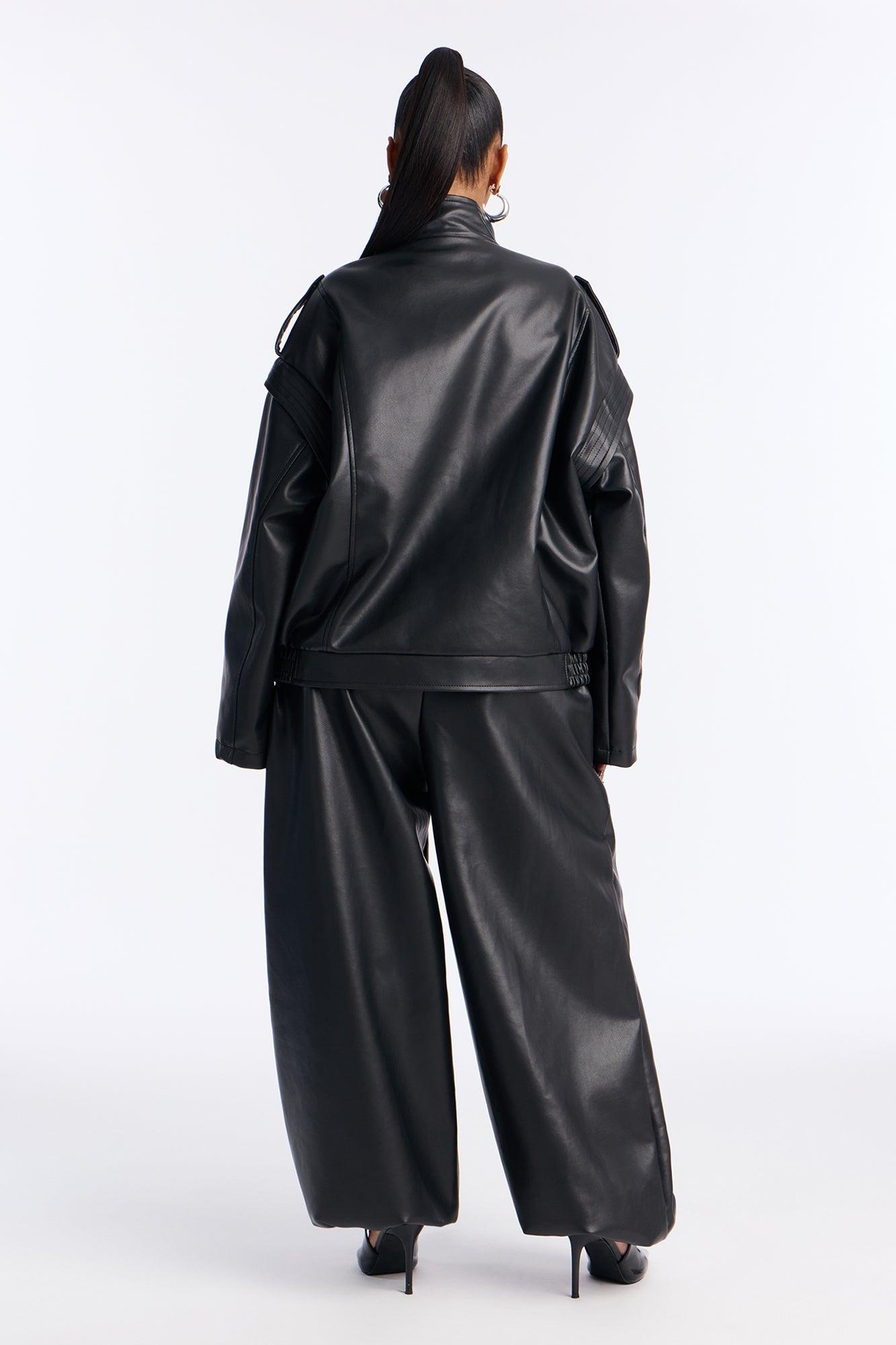 Available In Black. 2 Piece Ensemble Jacket And Jogger Set Stretch Lined Pockets Zip Up Elastic Waistband 28" Inseam Top & Bottom Shell : 60% Polyurethane 40% Polyester Top & Bottom Lining : 100% Polyester Imported