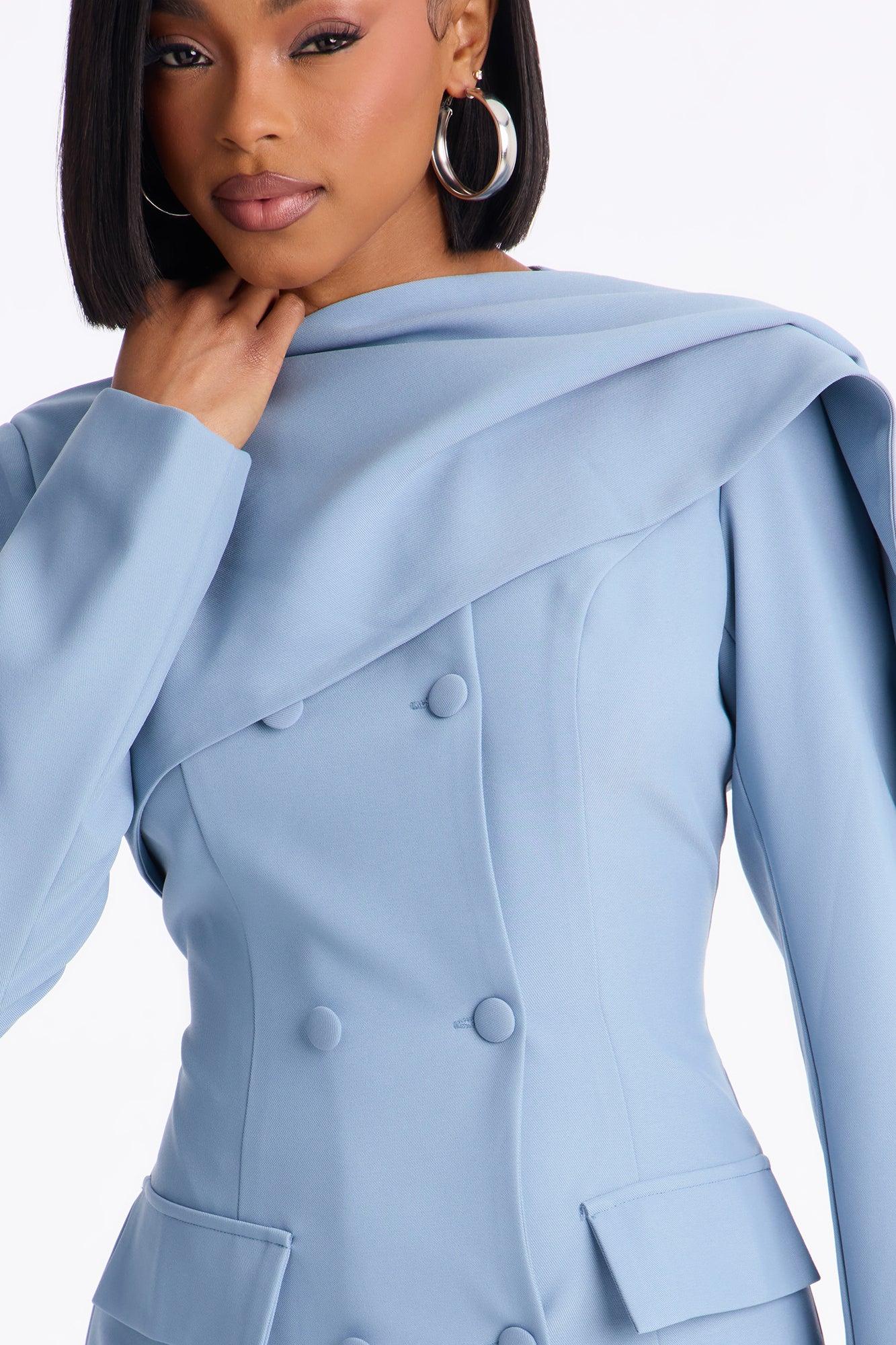 Run The World Long Sleeve Blazer Mini Dress - Dusty Blue Female
