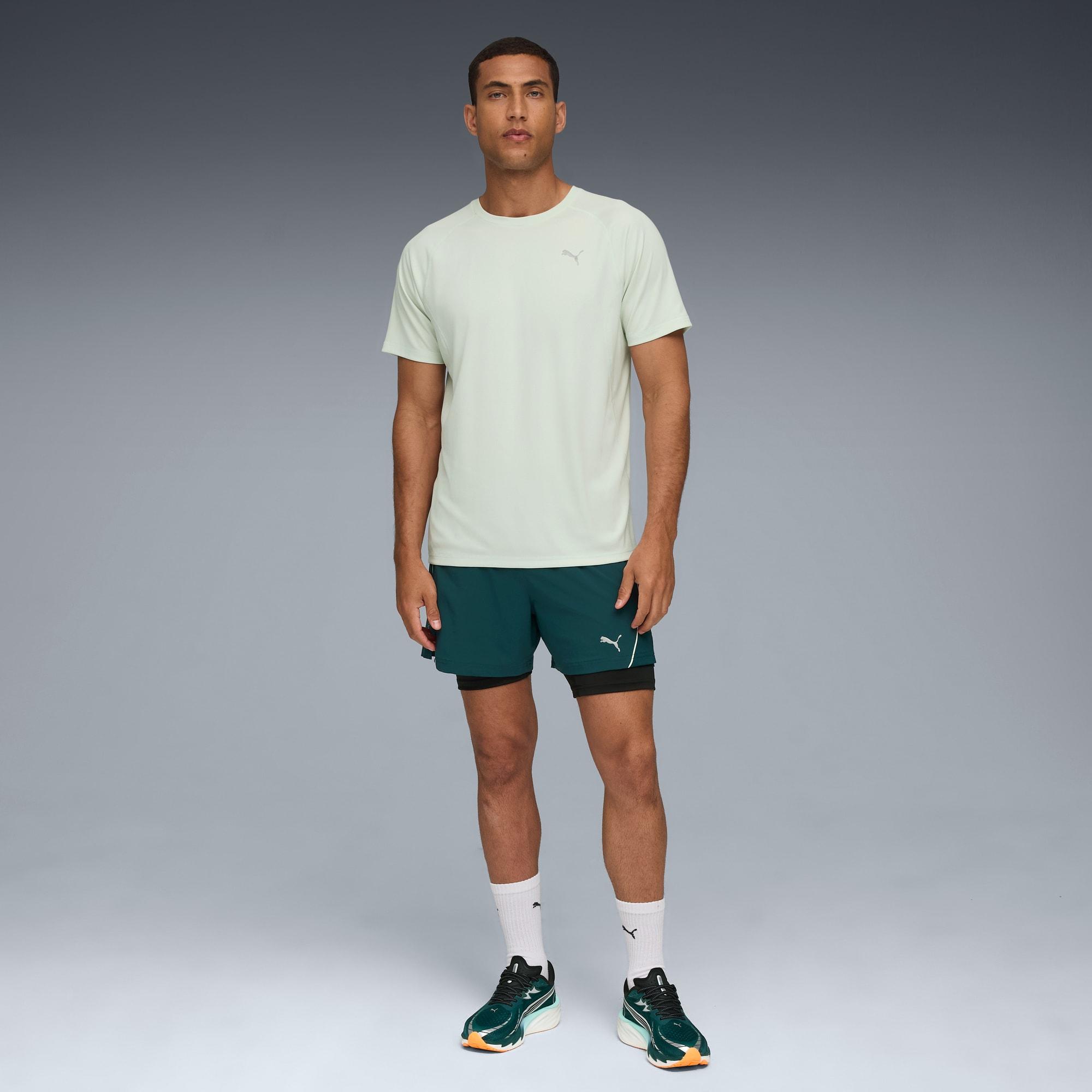 descriptionHit your stride with PUMA's latest performance tee. Featuring dryCELL technology to keep you dry, ergonomic cutlines for maximum movement, and flatlocked seams to reduce friction. Perfect for health enthusiasts who demand style and function in every run.Style: 526600_99Color: Sage Frostmeasure & size features & benefits details materials & care