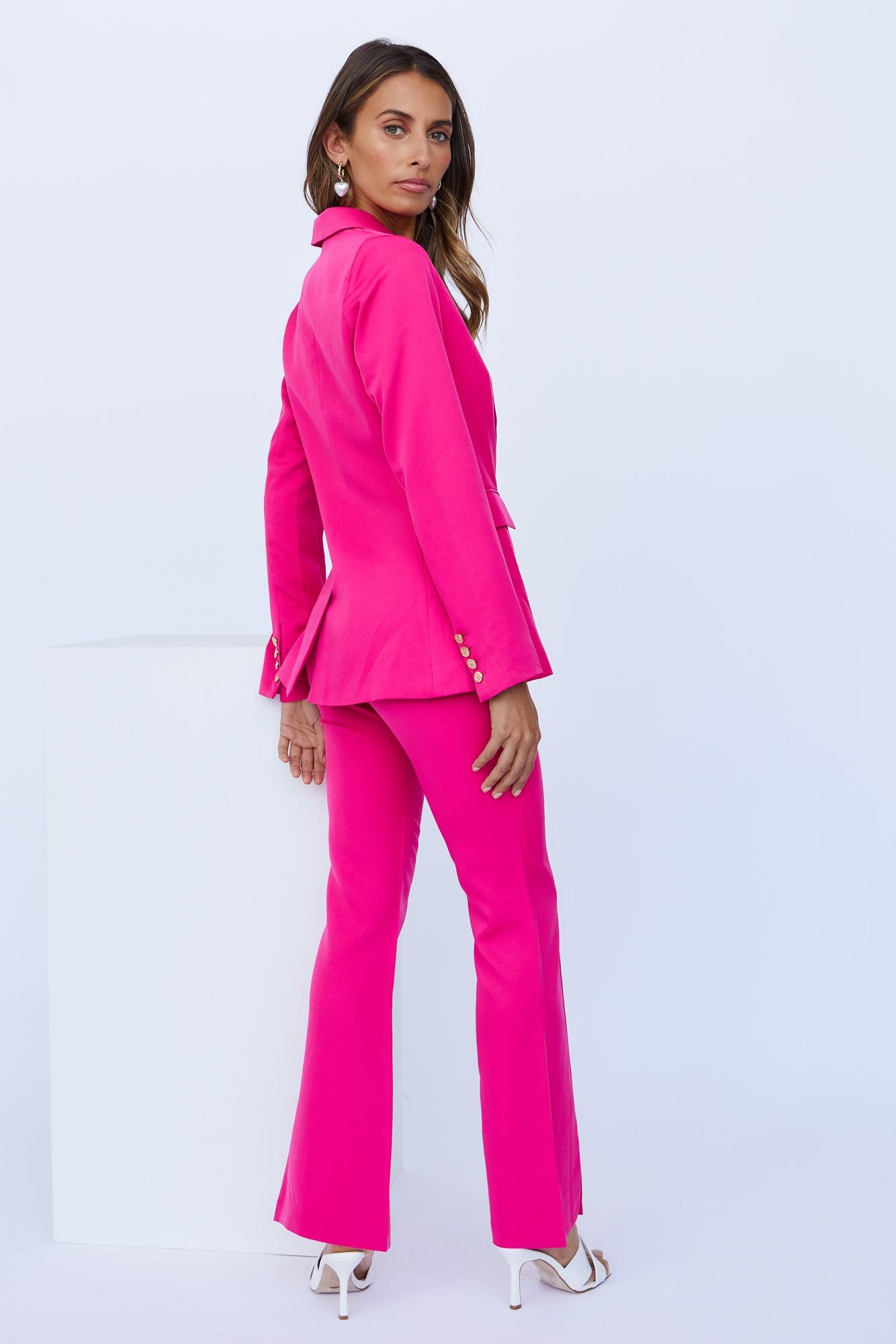 Length from shoulder to hem of size S: 70cm. Blazer. Not-lined. Cold hand wash only. Model is a standard XS and is wearing size XS. True to size. Lightweight, non-stretchy woven fabric. Front zipper with hook closure. Polyester/Spandex. Sleek and luxe are the only two moods that you live for. And we are here to serve girl! Adorn the Amity Pants and slay from morning brunch to date. Featuring a slightly flared out style with slits at the front and a fitted silhouette. Pair with the matching blazer and block heels.