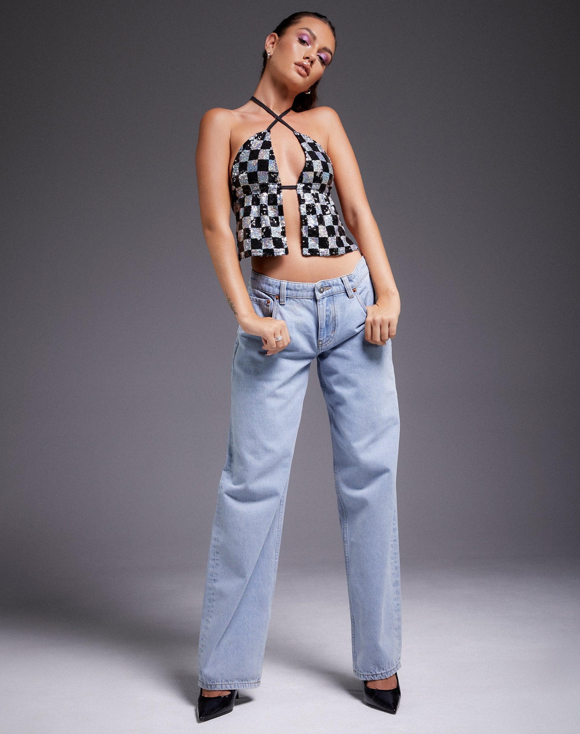 Ensure your outfit checks out with the Runita top. With a split open front, halter neck, thin strap detailing and open back, it features a sequin silver and black checkerboard print. For your next night out style with the Guida Skirt in Sequin Black. MODEL WEARS:S - MODEL HEIGHT:5'7 - FABRIC CONTENT: SHELL: 100% POLYESTER LINING: 100% POLYESTER