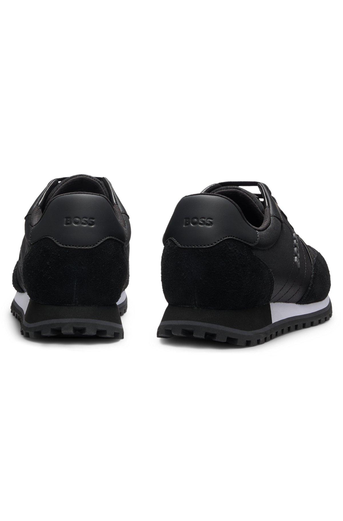 Running-inspired trainers with faux-leather trims - Black Sneakers from BOSS for Men for in the official HUGO BOSS Online Store free shipping