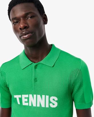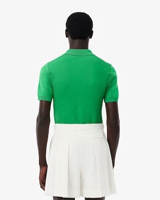 This polo is a prime example of the new tennis styles seen on the Lacoste SS25 runway, offering a bold new take on an iconic piece. Featuring irregular ribbing with subtle contrast details, plus central statement branding. A blend of fashion and sportswear style, finished with a subtle signature crocodile.