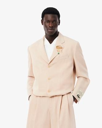 This stand-out blazer from the Lacoste SS25 runway collection is a bold, creative new take on a menswear essential. Made from lightweight wool with a unique cut, featuring wide, strong shoulders and a cropped hem, with a folded-under effect to create volume. Plus an original nylon undercollar and retro logo label for a sophisticated finish.