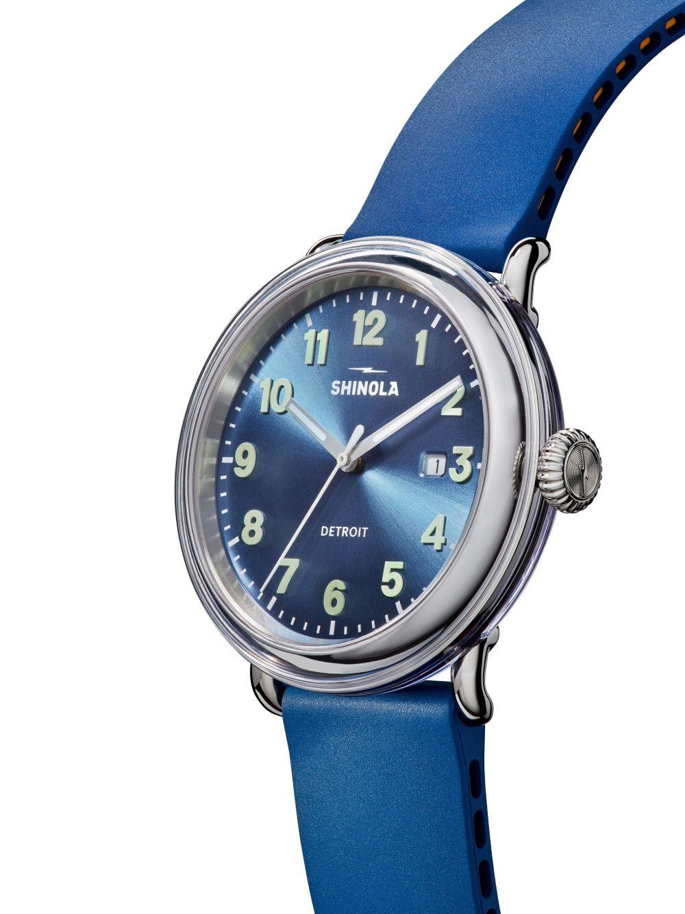 Shinola Runwell 40mm | Blue | blue silicone strap | round case shape | 40mm case size | quartz movement | screw-in crown | This item comes with a standard one-year warranty from the boutique. | Silicone/stainless steel | Watches | Jewelry | Women | Fashion Watches | Watches | Men