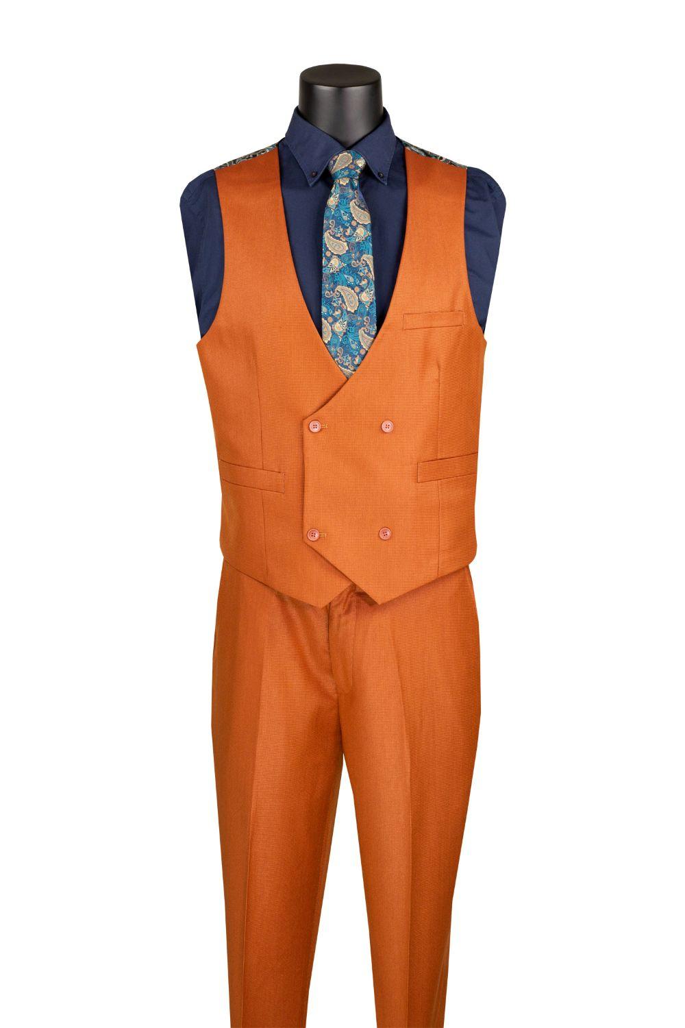 Rust Regular Fit 3 Piece Sharkskin Suit with Vest and Adjustable Waistband Pants