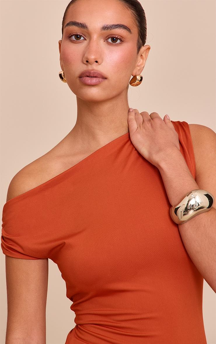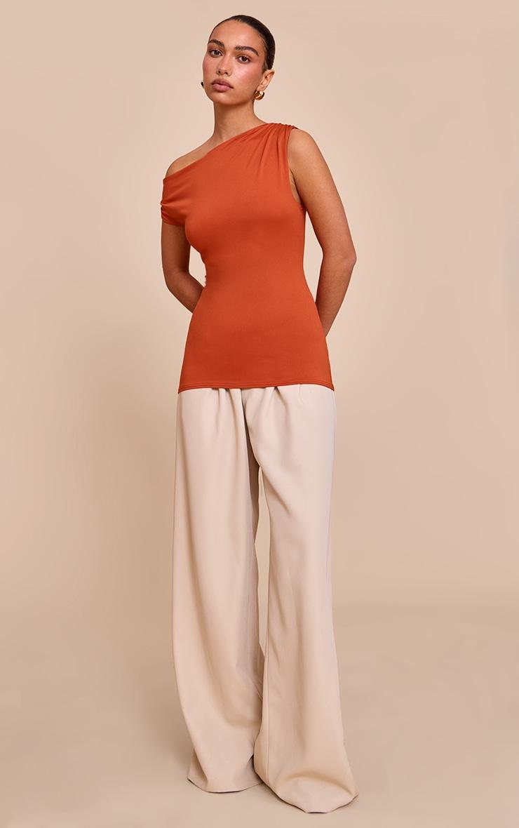 Stand out from the crowd in this rust slinky asymmetric ruched detail long top. Made with rust toned material, this top has a one shoulder design and a hip length fit. Add it to floaty pants, sandals and your go-to chunky gold jewelry for a look we're loving.Length approx 48.5cm/19inch (Based on sample size US 4)Model wears size UK 8/ EU 36/ AUS 8/ US 4Model Height - 5ft 7inchp]:!mb-4inch>Brand: PrettyLittleThingCategory: TopsProduct type: Bardot TopColor: RustMaterial: Single JerseyDesign: PlainNeckline: One ShoulderSleeves: SleevelessOccasion: Evening