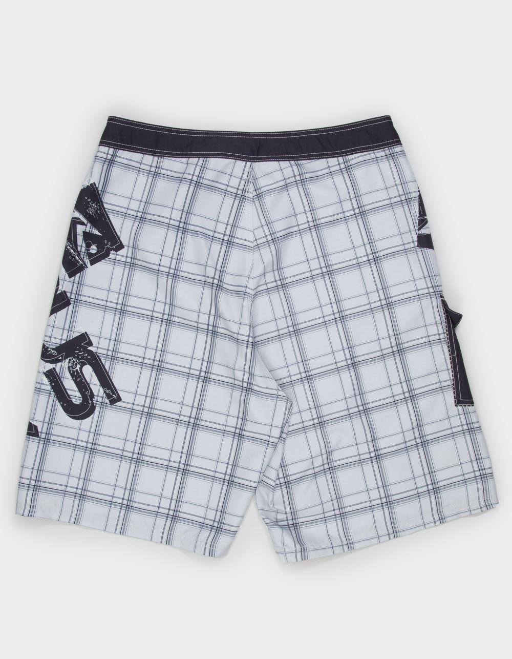 Rusty Fixed Waist Boardshorts. Allover pattern with Rusty graphics. Cargo pocket with flap closure on right leg. Fixed waist with drawcord closure and Rusty woven label. Approximate inseam: 9". Approximate outseam: 23". 100% Polyester. Machine wash. Imported.