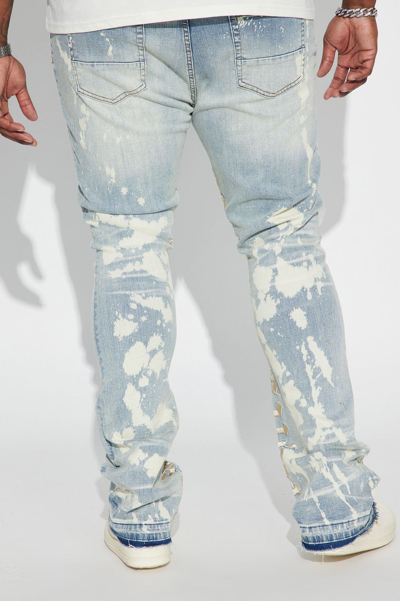 Available In Black And Bleach Blue Wash. Stacked Skinny Flared Fit Stretch Denim Zip Fly Button Closure 5 Pocket Body Bleach Placement Open Hem Disclaimer: Due To TheWash Process & Embroidery PlacementEach Garment Is Unique. 98% Cotton 2% Spandex Imported California Proposition 65WARNING: Cancer and Reproductive Harm - www.P65Warnings.ca.gov.