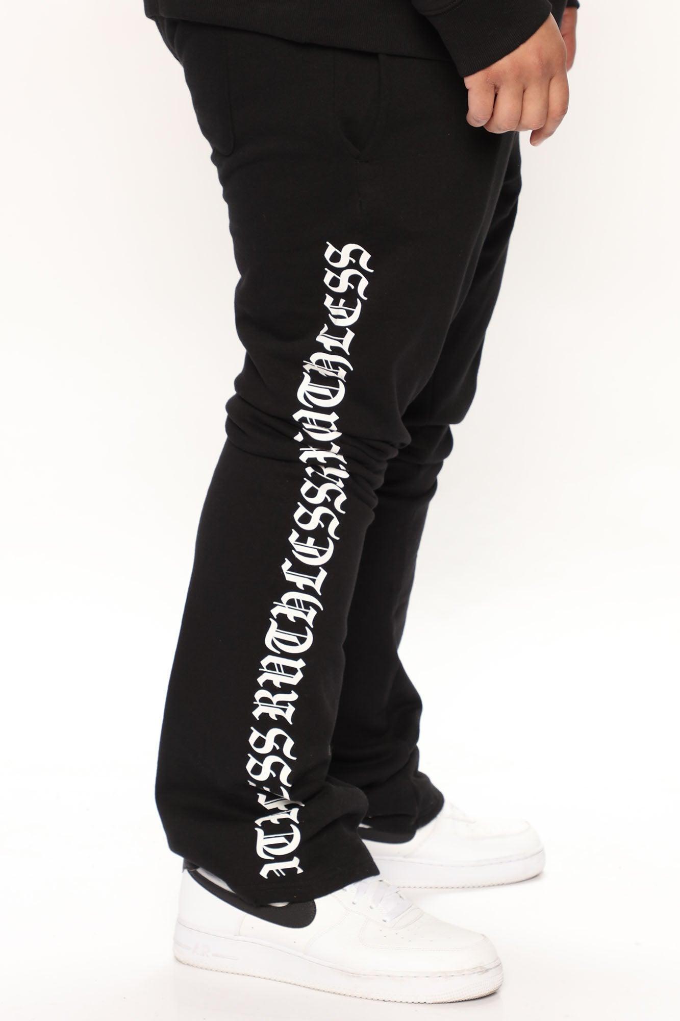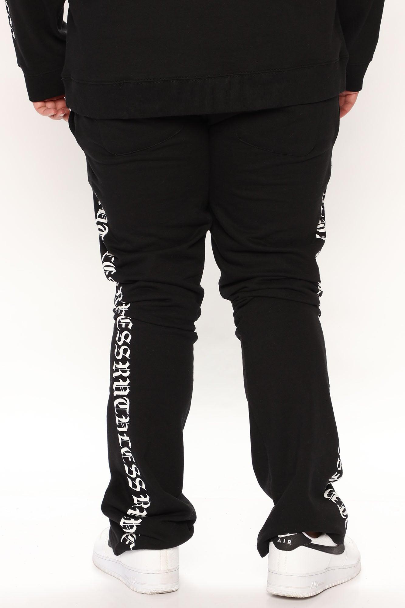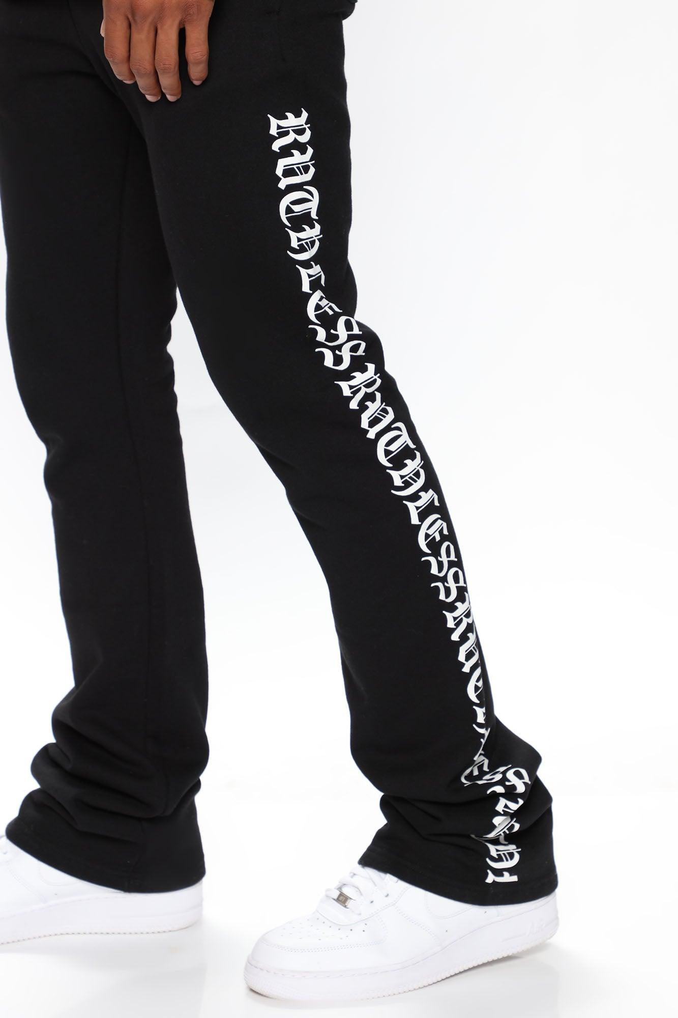 Model Height: 6'2 - Waist: 32 - Wearing Large Big & Tall: Height 6'3 - Waist 42 - Wearing XXXL Available In Black. Elastic Waistband Drawstring Side Pockets Back Pocket "Ruthless" Side Hit Flared Fit Disclaimer: Due To The Printing Process A Difference In Saturation May Occur, Each Garment Is Unique 60% Polyester 40% Cotton Imported California Proposition 65WARNING: Cancer and Reproductive Harm - www.P65Warnings.ca.gov.