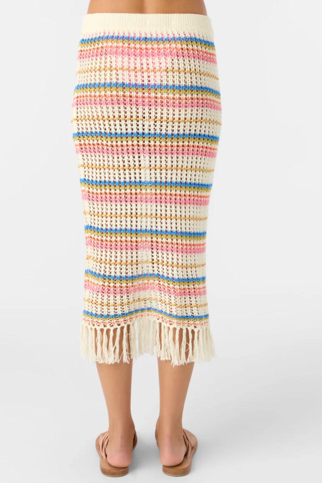 Sun, swim, and a little fringe. The Ryan Stripe Skirt is your go-to cover-up for statement-making beach days. Crafted from a premium cotton crochet fabric with a breezy fringe hem that sways every step, and an elastic waist. This skirt is perfect for layering over your favorite bikini bottom.