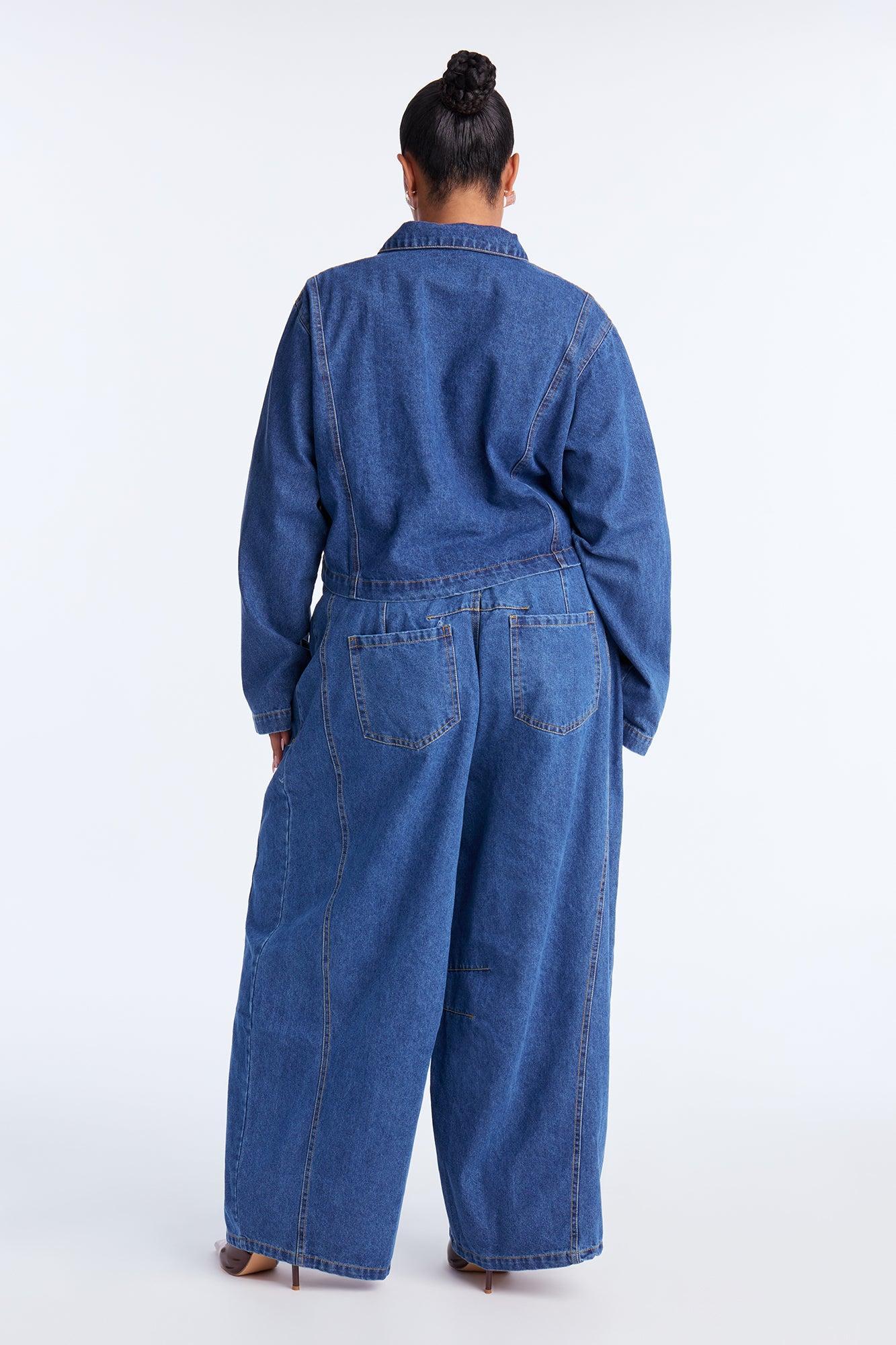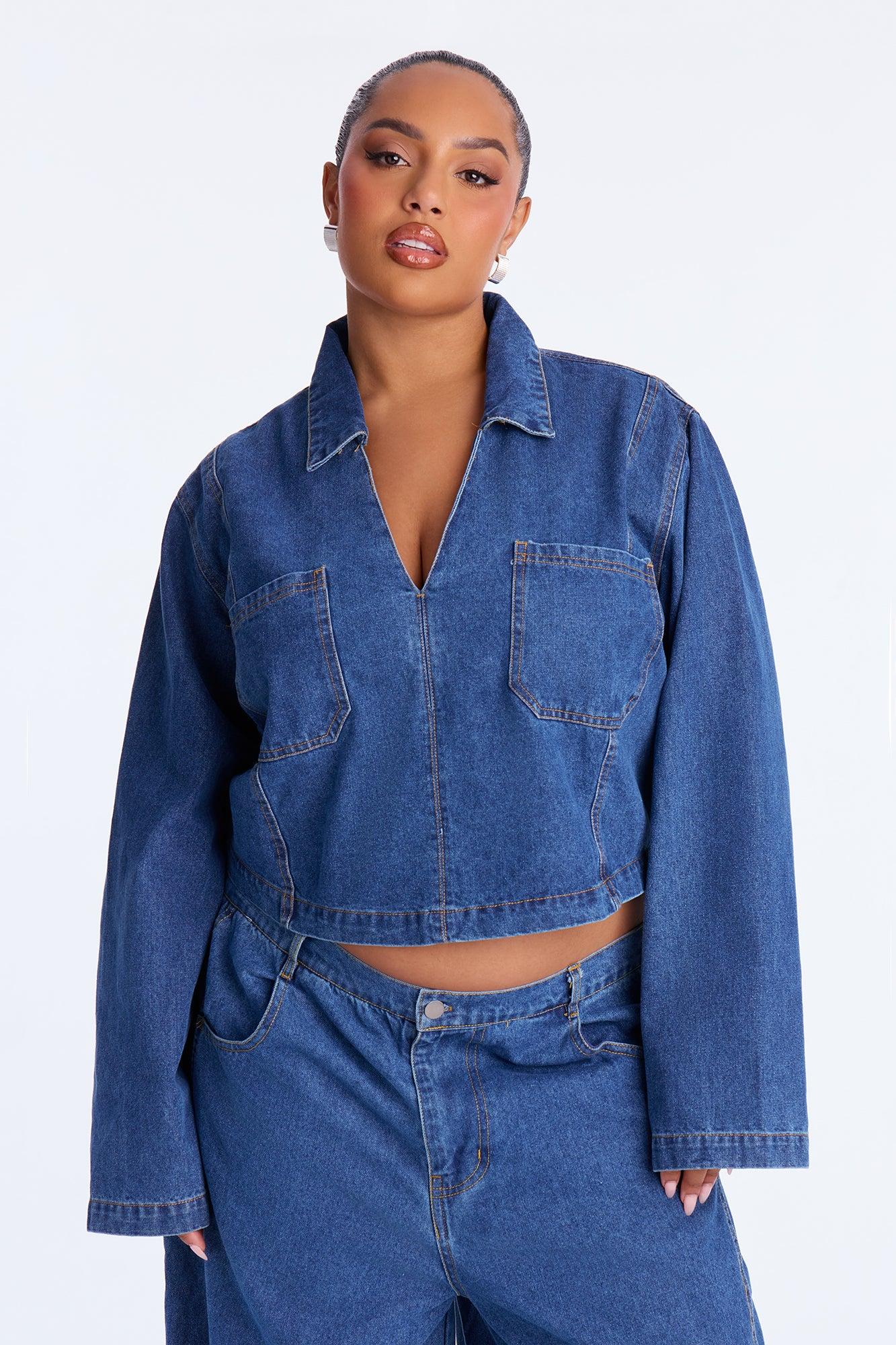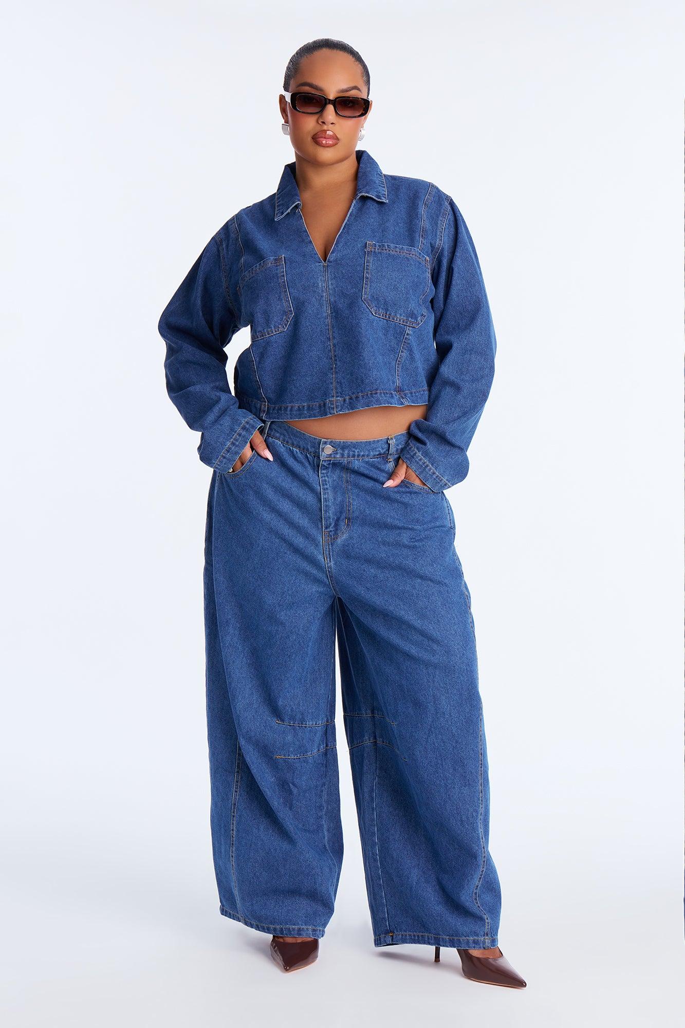 Available In Medium Wash. 2 Piece Ensemble Long Sleeve Top And Barrel Pant Front Chest Pockets Non Stretch 4 Pocket Detail Front Zipper And Button Closure 27" Inseam Disclaimer: Due To The Specialized Wash, Each Garment Is Unique. Self: 70% Cotton 30% Polyester Lining: 80% Polyester 20% Cotton Imported
