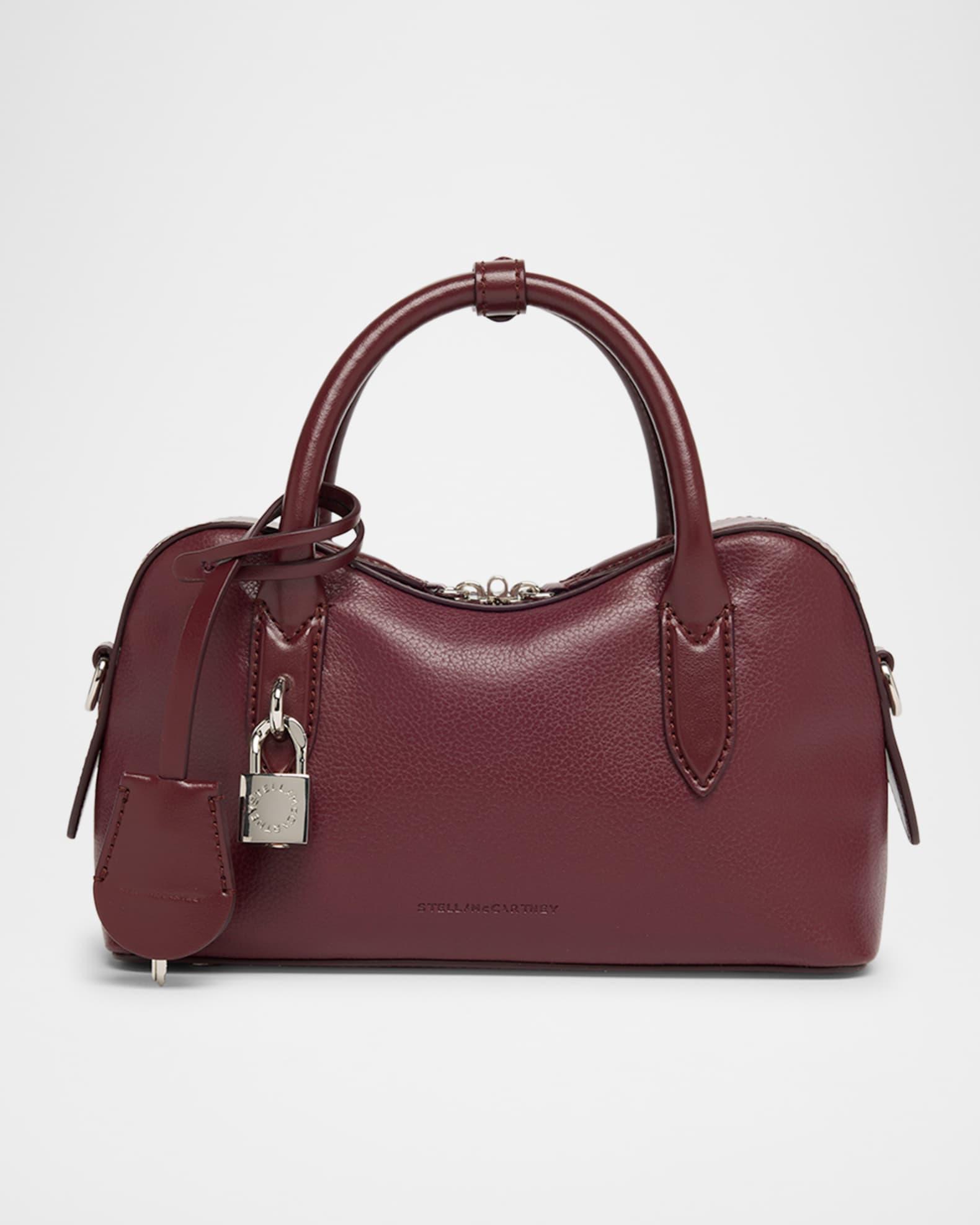 Stella McCartney "Ryder" crossbody bag in eco mat grainy nylon Top handles with strap accent; keyring padlock tag Detachable, adjustable crossbody strap Can be worn as a top handle or crossbody bag Two-way zip top closure Interior, one slip pocket Feet protect bottom of bag Approx. 5.1"H x 9.5"W x 3.4"D Made in Italy