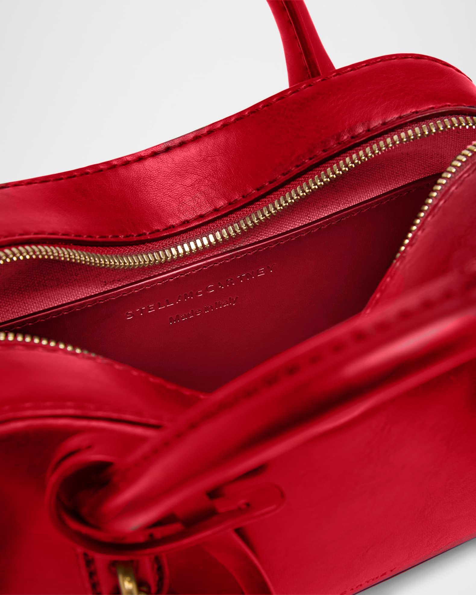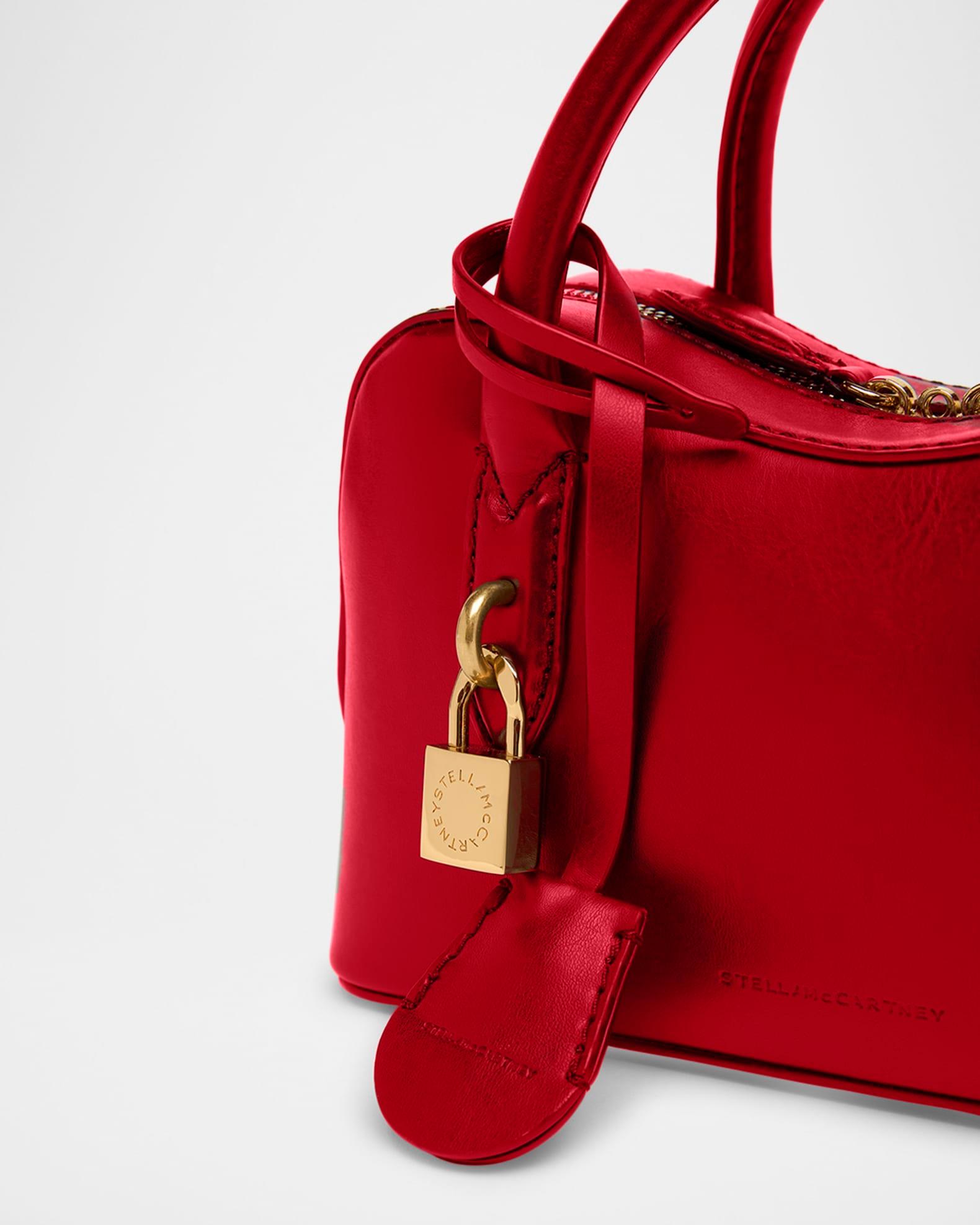 Stella McCartney's "Ryder" tote crossbody bag is crafted from a cruelty-free, vegan alternative to animal leather, featuring VEGEA—a sustainable, grape-based material made from the agricultural waste of Italian wineries Rolled top handles with snap strap; padlock and keyring charms Detachable, adjustable crossbody strap Can be worn as a top handle or crossbody bag Two-way zip top closure Interior, one slip pocket GOTS-certified Canopy hemp lining Feet protect bottom of bag Approx. 5.1"H x 9.4"W x 3.4"D Polyurethane/polyester Made in Italy