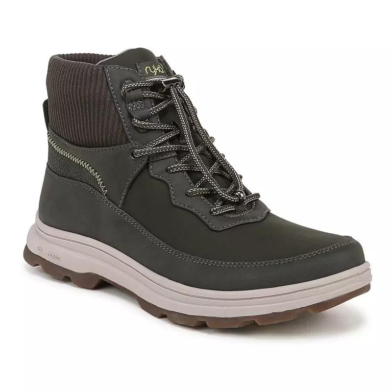 Stand up to any cold weather in style with these Ryka Brae 2 sporty, water-repellent boots. Click this FOOTWEAR GUIDE to find the perfect fit and more! Stand up to any cold weather in style with these Ryka Brae 2 sporty, water-repellent boots. Click this FOOTWEAR GUIDE to find the perfect fit and more! FEATURES Cold-weather boots best for casual walking and everyday wear Performance tech: RE-ZORB responsive cushioning in the midsole for impact protection and shock absorption Made for women fit: designed for a womans unique foot shape, movement, and build with a narrower heel, roomier toe, and softer foot cushioning Water-repellent nylon with durable synthetic overlays and soft ribbed knit collar Lace-up front with adjustable toggle for easy on/off Insole: Anatomical insole with extra arch and heel support Midsole: Cushioned EVA with RE-ZORB responsive cushioning Durable TPR plate outsole for strength and stabilityDETAILS Synthetic upper Fabric lining Manmade outsole Round toe Toggle closure EVA footbed Multi-directional outsole Heel height: 1.125-in. Boot shaft heights: 5.04-in. Boot shaft circumference: 8.35-in. Spot clean Imported Size: 9. Color: Alpine Green Faux Lthr. Gender: female. Age Group: adult.