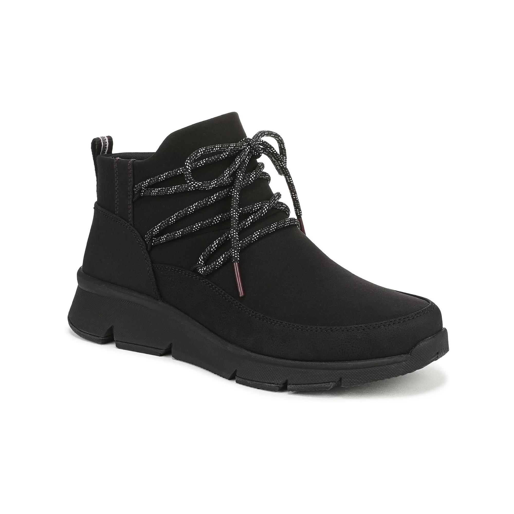 Embrace the changing seasons with Ryka’s stylish ankle booties that blend comfort and functionality effortlessly. Designed specifically for women, these boots feature superior cushioning and a chic silhouette, ensuring your steps are not only supported but also undeniably fashionable, whether you're enjoying a casual stroll or tackling daily adventures. Click this FOOTWEAR GUIDE to find the perfect fit and more! - https://www.kohls.com/feature/shoesizeguide.jsp. FEATURES: BEST FOR: Casual walking + everyday wear, PERFORMANCE TECH: Exceptional cushioning for standout comfort, MADE FOR WOMEN FIT: Designed for a woman's unique foot shape with a narrower heel, roomier toe + softer cushioning, MATERIALS: Water- and mud-repellent nylon upper with faux leather overlays, CLOSURE: Lace up styling with inside zipper + heel pull tab for easy on/off, INSOLE: Anatomical insole with extra arch support + heel support and partially recycled EVA, MIDSOLE: ACTIVfoam™ EVA for soft cushioning, OUTSOLE: Durable second-density outsole, RYKÄREPEL: Water and mud-repellant specially treated to help shoes stay clean and dry, WEIGHT: 198 g/7.0 oz per shoe, HEEL-TO-TOE DROP: 10mm. DETAILS: Synthetic upper, Fabric lining, RUBBER outsole, Round toe, Zipper closure, EVA footbed, Multi-directional outsole, 1.125-in. heel height, 3.543-in. shaft height, 9.134-in. shaft circumference, Spot clean, Imported. Color: Black. Gender: female. Age Group: adult. Material: OTHER MATERIAL.