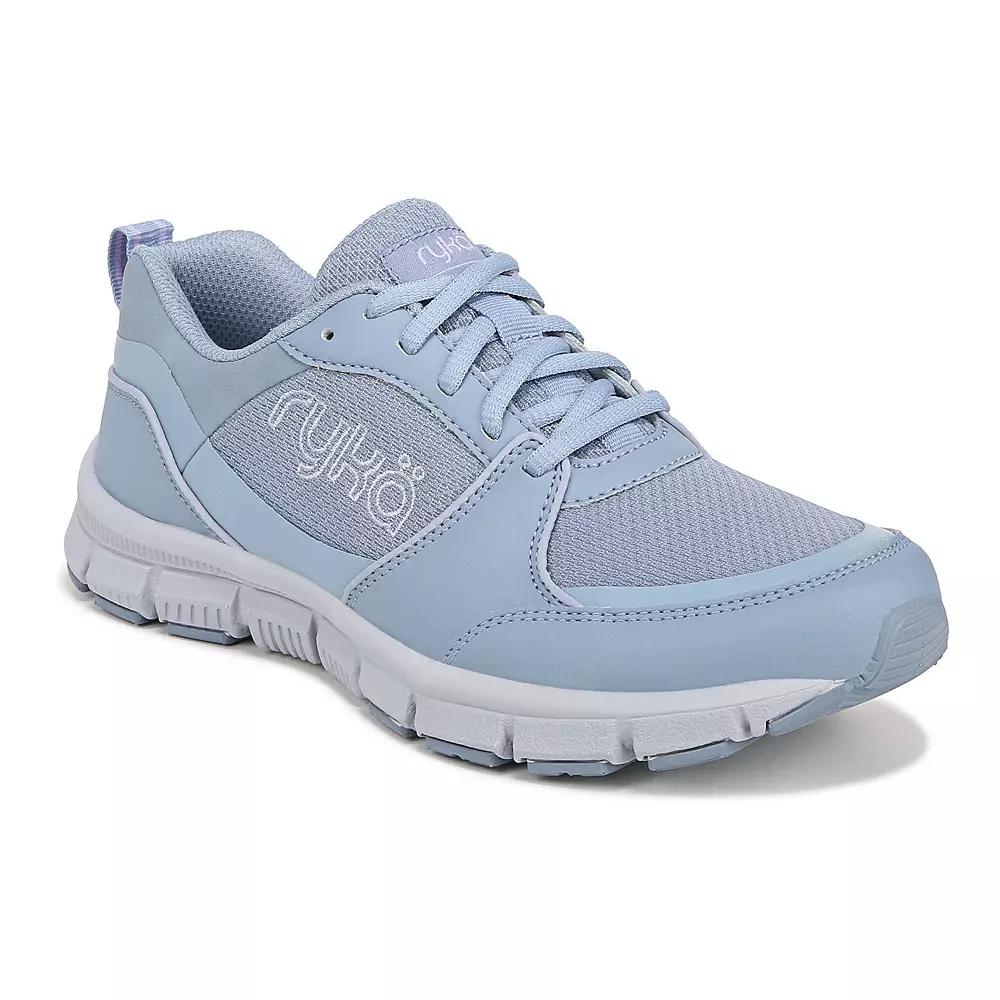 Get support and cushion for all your favorite cross-training workouts in these Ryka Hypnotize womens sneakers with our powerful Made for Women fit.Click this FOOTWEAR GUIDE to find the perfect fit and more! Get support and cushion for all your favorite cross-training workouts in these Ryka Hypnotize womens sneakers with our powerful Made for Women fit. Click this FOOTWEAR GUIDE to find the perfect fit and more! FEATURES Breathable mesh with durable leather and faux leather overlays Lace-up front with padded collar + Heel pull tab for easy on/off Anatomical insole for arch + heel support ACTIVfoam EVA for soft cushioning Flexible and durable second-density EVA PERFORMANCE TECH: Exceptional cushioning throughout BEST FOR: Cross-training MADE FOR WOMEN FIT: Designed for a womans unique foot shape, muscle movement, and build with a narrower heel, roomier toe, and softer foot cushioningDETAILS Leather & mesh upper Fabric lining Manmade outsole Round toe Lace-up closure Foam footbed Multi-directional outsole Spot clean WEIGHT: 182 g/6.4 oz per shoe Size: 7.5. Color: Blue. Gender: female. Age Group: adult.