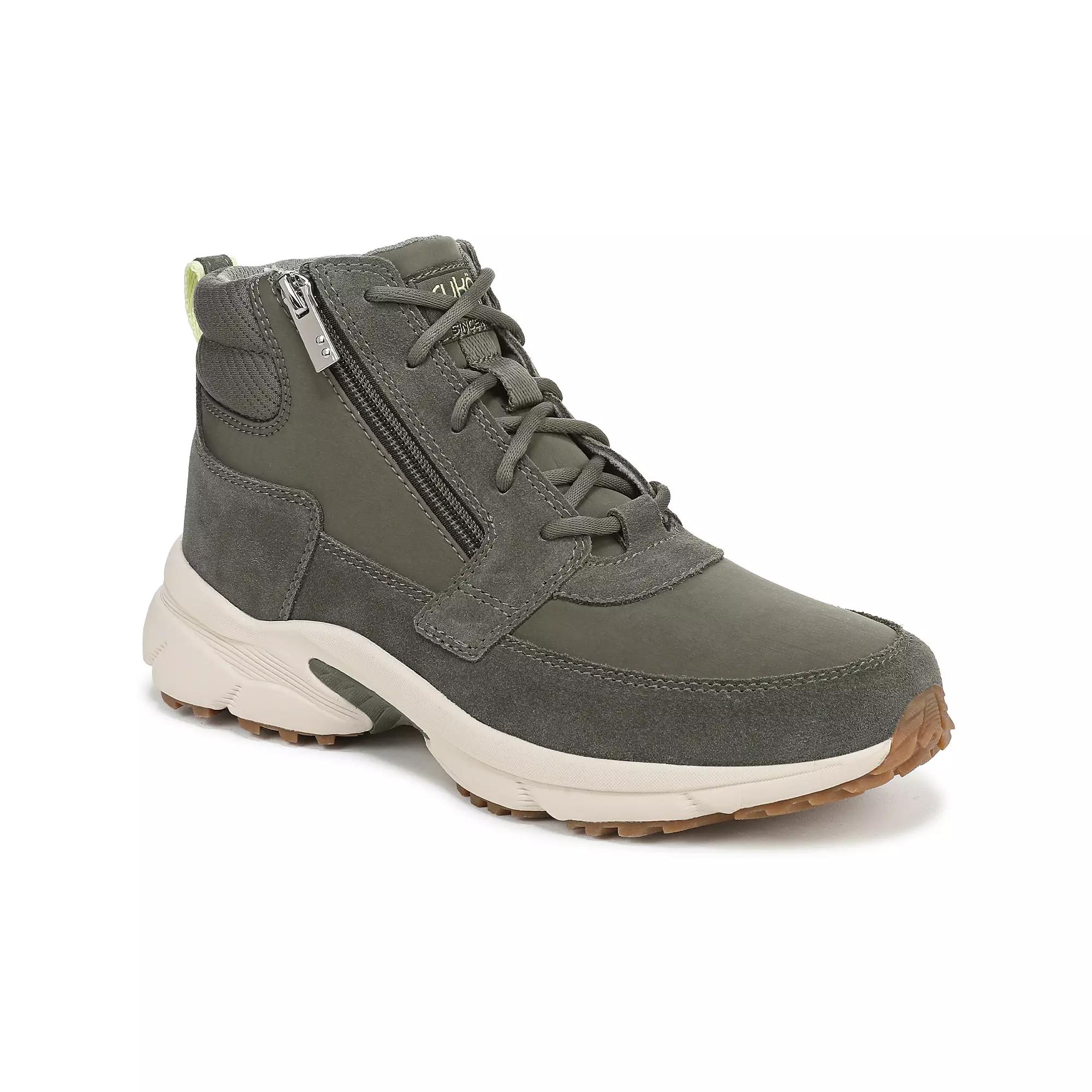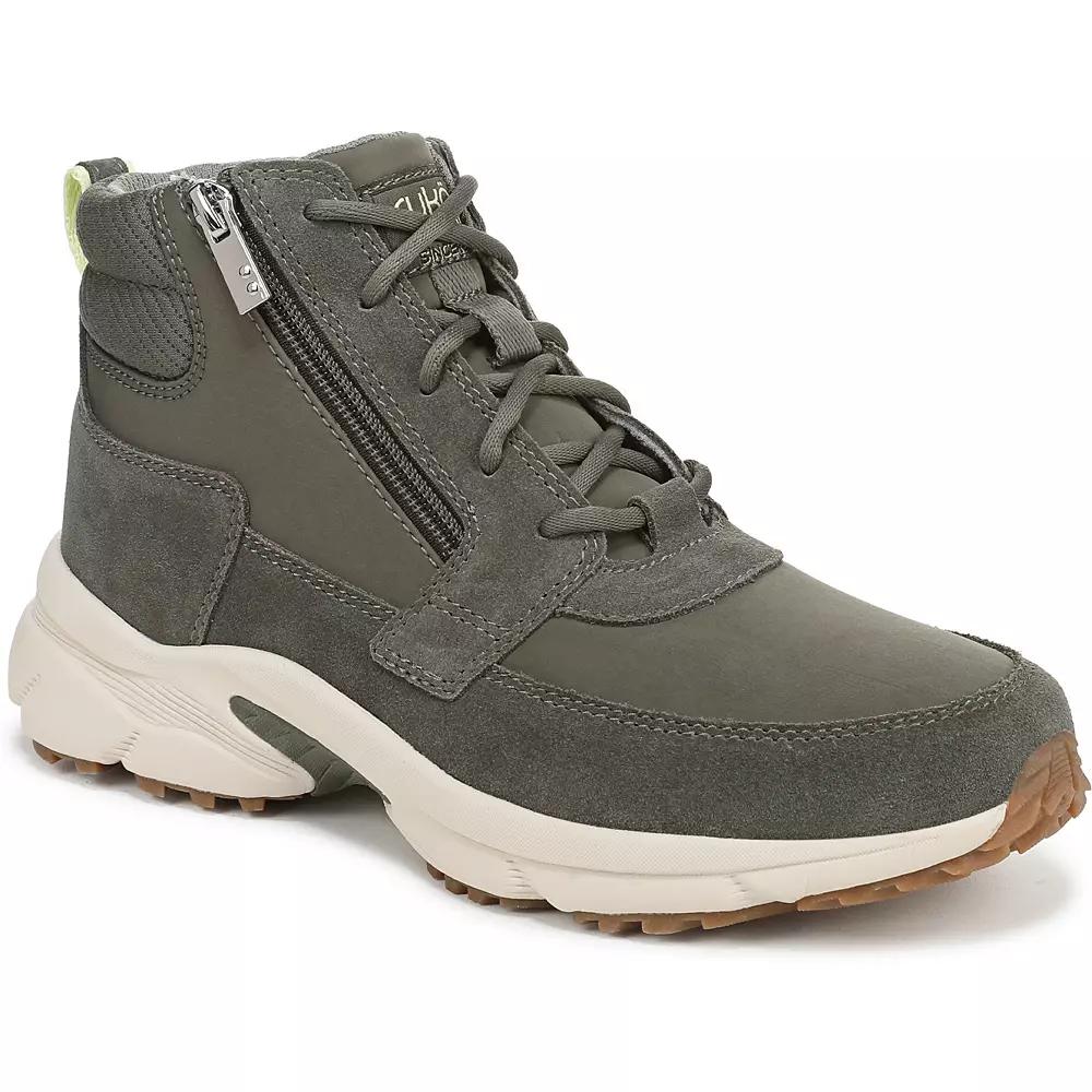 Unleash your adventurous spirit with Ryka's innovative sneaker boots, designed specifically for women who love to explore. Featuring an amazing combination of durability, lightweight support, and exceptional cushioning, these boots are your perfect companion for trail walking, ensuring both comfort and style every step of the way. Click this FOOTWEAR GUIDE to find the perfect fit and more! - https://www.kohls.com/feature/shoesizeguide.jsp. FEATURES: BEST FOR: Trail walking, PERFORMANCE TECH: TreadTech lug outsole tread pattern with traction and grip purposefully designed for use on trails + Skeletal Guidance System for exceptional built-in support under the midfoot for stability, INNOVATIVE TECH: Exceptional cushioning throughout for standout comfort, MADE FOR WOMEN FIT: Designed for a woman's unique foot shape with a narrower heel, roomier toe + softer cushioning, MATERIALS: Water- and mud-repellent protection with textile upper and leather suede overlays + Padded heel collar, CLOSURE: Lace up styling with side zipper closure and heel pull for easy on/off, INSOLE: Anatomical insole with extra arch support + heel support and partially recycled EVA, MIDSOLE: ACTIVfoam™ EVA for soft cushioning, OUTSOLE: Durable molded rubber outsole with tread design for extra traction on trails, RYKÄREPEL: Water and mud-repellant specially treated to help shoes stay clean and dry, WEIGHT: 26 2g/9.3 oz per shoe, HEEL-TO-TOE DROP: 8.5mm. DETAILS: Leather upper, Fabric lining, TPR outsole, Round toe, Zipper & lace-up closure, EVA footbed, Multi-directional outsole, 1.125-in. heel height, 4.409-in. shaft height, 8.031-in. shaft circumference, Spot clean, Imported. Size: 5.5. Color: Ivy Green. Gender: female. Age Group: adult. Material: OTHER MATERIAL.