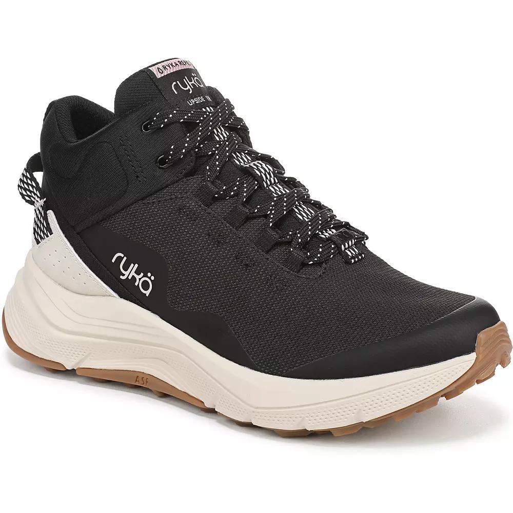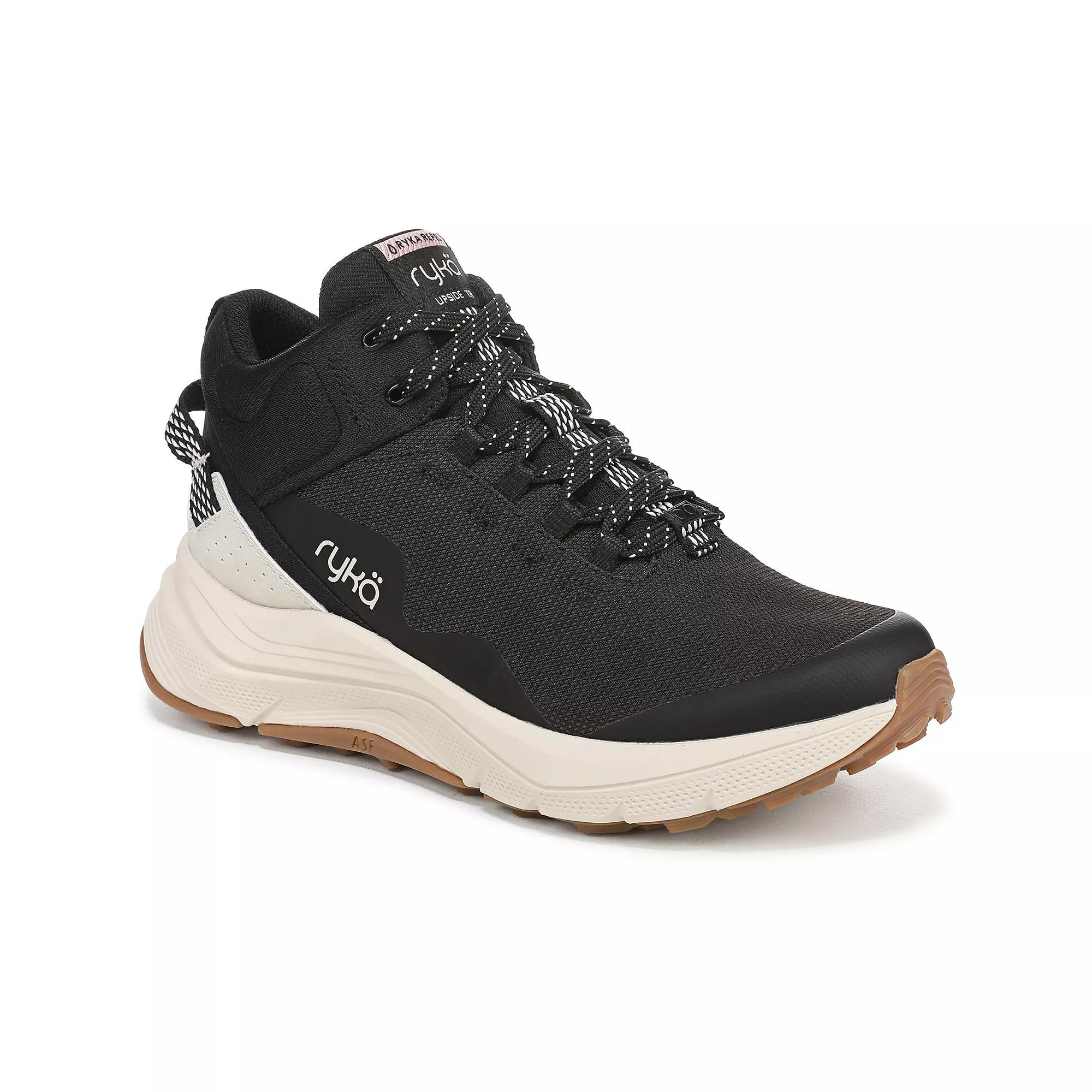 Discover the perfect blend of style and functionality with Ryka's innovative boots, designed for the modern explorer. Offering unparalleled comfort and support on trails, these lace-up sneakers promise stability wherever your adventures take you, ensuring your feet stay happy and healthy mile after mile. Click this FOOTWEAR GUIDE to find the perfect fit and more! - https://www.kohls.com/feature/shoesizeguide.jsp. FEATURES: BEST FOR: Trail and hiking, APMA APPROVED: Awarded the American Podiatric Medical Association Seal of Acceptance for products that promote good foot health, PERFORMANCE TECH: ASF™ (Absorb/Support/Flex) technology to support each phase of your stance + Skeletal Guidance System for exceptional built-in support under the midfoot for stability, INNOVATIVE TECH: RE-ZORB® LITE responsive cushioning for lightweight shock absorption + impact protection, MATERIALS: Water- and mud-repellent protection with rip-stop mesh + Padded collar, CLOSURE: Lace-up front for a secure fit + Heel pull tab for easy on/off, INSOLE: Anatomical insole with extra arch support + heel support made from partially recycled EVA, MIDSOLE: Lightweight foam with density calibrated to a woman’s body mass and gait + Full-length RE-ZORB responsive heel cushioning for shock absorption, OUTSOLE: Durable rubber trail sole with flex during acceleration + TreadTech lug outsole for reliable grip + Molded SGS stability shank to promote stability and reduce pronation, RYKÄREPEL: Water and mud-repellant specially treated to help shoes stay clean and dry, WEIGHT: 282 g/9.9 oz per shoe, HEEL-TO-TOE DROP: 8 mm. DETAILS: Fabric upper, Fabric lining, RUBBER outsole, Round toe, Lace-up Closure, EVA footbed, Multi-directional outsole, 1.875-in. heel hieght, 3.031-in. shaft height, 7.874-in. shaft circumference, Spot clean, Imported. Size: 5. Color: Black. Gender: female. Age Group: adult. Material: OTHER MATERIAL.