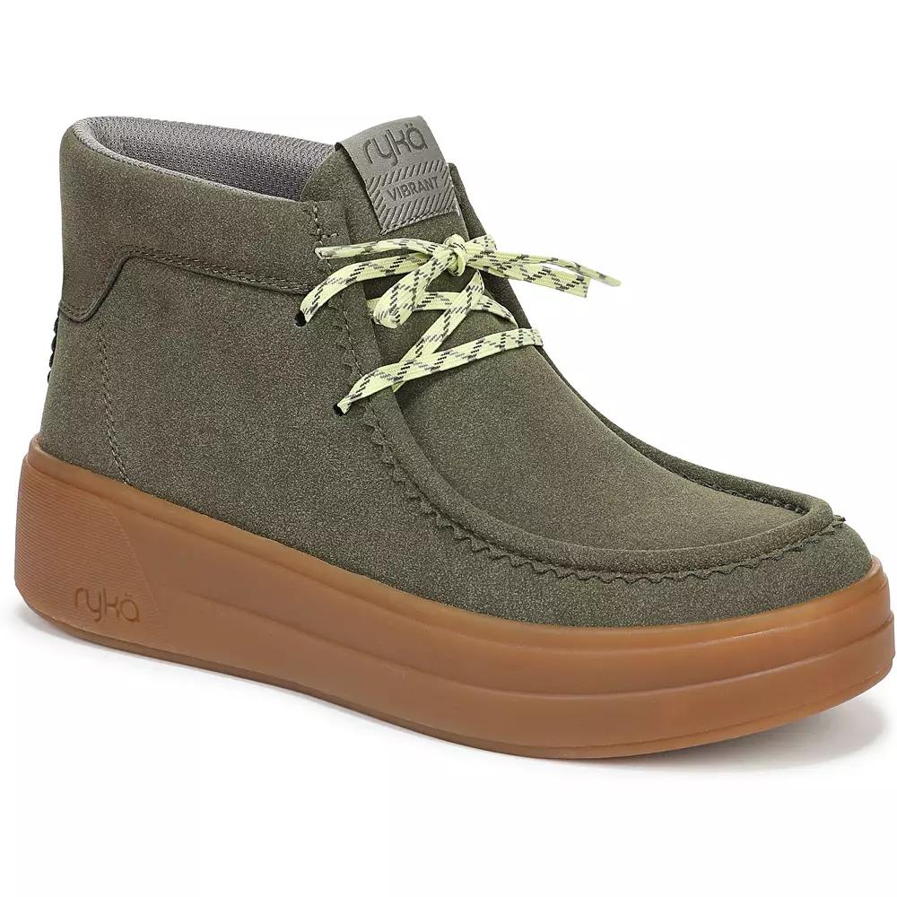 Embrace comfort and style with these chic ankle booties from Ryka, where sporty soles meet on-trend chukka design. Perfect for everyday wear, they feature exceptional cushioning and a convenient zipper closure, making them your go-to footwear for casual outings and walks. Click this FOOTWEAR GUIDE to find the perfect fit and more! - https://www.kohls.com/feature/shoesizeguide.jsp. FEATURES: BEST FOR: Casual walking + everyday wear, PERFORMANCE TECH: Exceptional cushioning throughout for standout comfort, MADE FOR WOMEN FIT: Designed for a woman's unique foot shape with a narrower heel, roomier toe + softer cushioning, MATERIALS: Faux leather upper with padded collar, CLOSURE: Lace up styling with zipper closure for easy on/off, INSOLE: Anatomical insole with extra arch support and heel support + QMassage bumps for extra comfort, OUTSOLE: Durable molded rubber cupsole, WEIGHT: 320g/11.3oz per shoe, HEEL-TO-TOE DROP: 10mm. DETAILS: Fabric upper, Fabric lining, HTRB outsole, Round toe, Lace-up closure, Multi-directional outsole, 1.375-in. heel height, 3.976-in. shaft height, 9.213-in. shaft circumference, Machine wash on cold and air dry, Imported. Size: 9.5 Wide. Color: Alpine Green. Gender: female. Age Group: adult. Material: OTHER MATERIAL.