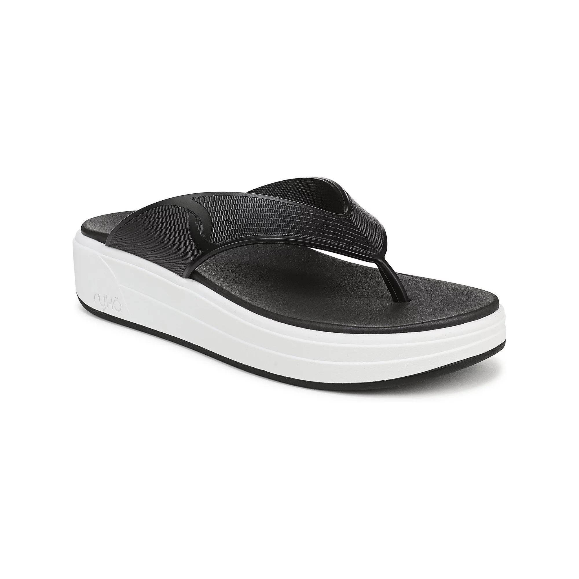 Step into summer bliss with Ryka sandals that are all about making a splash. Featuring a molded comfort sock and a snug thong fit, these sandals are perfect for your daily strolls, ensuring every step feels like a walk on sunshine. Click this FOOTWEAR GUIDE to find the perfect fit and more! - https://www.kohls.com/feature/shoesizeguide.jsp. FEATURES: Sandals that make a splash, Bestselling Viv bottom reimagined with molded comfort sock, Sunshine-ready thong silhouette, Best for everyday walking, Built for a woman’s quadricep muscle Q angle, Narrower heel and roomier toe, Contoured cushioning for stability, Slip on fit, Molded EVA footbed, Dual density EVA outsole, Lightweight design at 240g/8.5oz per shoe, Heel-to-toe drop of 13mm. MATERIAL & CARE: PVC upper, CM EVA and DDHA outsole, Fabric lining, EVA footbed, Spot clean. DETAILS: Slip-on closure, Multi-directional outsole, Round toe, 1.375" heel height, Imported. Size: 6.5 Wide. Color: Black. Gender: female. Age Group: adult. Material: OTHER MATERIAL.