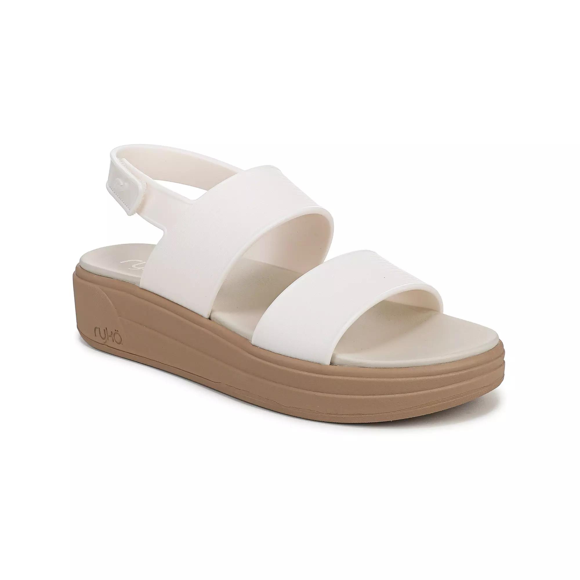 Step into sunshine-ready style with these Ryka sandals that are all about making every step a delight. Featuring a comfy molded footbed and adjustable backstrap, they offer the perfect blend of support and flair for all your daily adventures, ensuring you look fabulous while walking on cloud nine. Click this FOOTWEAR GUIDE to find the perfect fit and more! - https://www.kohls.com/feature/shoesizeguide.jsp. FEATURES: Bestselling Viv bottom with a molded comfort sock, Sunshine-ready strappy silhouette, Built for a woman’s quadricep muscle Q angle, Narrower heel and roomier toe for comfort, Contoured cushioning for stability, Adjustable hook-and-loop backstrap, Molded EVA footbed for support, Dual density EVA outsole for durability, Lightweight design at 222g/7.8oz per shoe, Heel-to-toe drop of 13mm. MATERIAL & CARE: PVC upper, CM EVA+DDHA outsole, Fabric lining, EVA footbed, Spot clean. DETAILS: Hook-and-loop tape closure, Multi-directional outsole, Round toe, 1.375 in. heel height, Imported. Size: 9.5 Wide. Color: White Alyssum. Gender: female. Age Group: adult. Material: OTHER MATERIAL.
