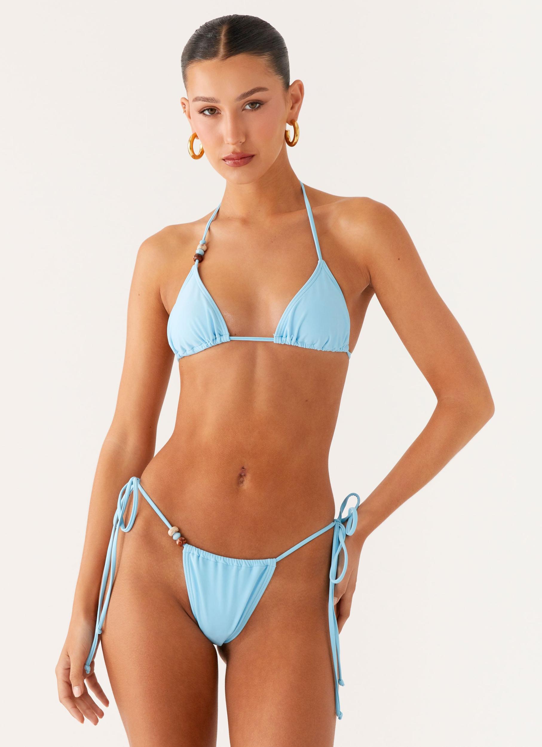 Peppermayo Exclusive The Ryland Bead Bikini Top is designed for sun-soaked days and poolside glamour. Featuring triangular cups with ruched underbust detailing and thin adjustable straps, this top ties at the back for a custom fit and is finished in an exclusive print. - Triangular cup- Ruched underbust- Thin adjustable straps- Back tie- Exclusive print (print placement will differ per garment)- Fabric: 82% Nylon, 18% Spandex Size AU 8 / US 4 garment measurements: Cup Height: 15 cm / 5.91 inCup Length: 16 cm / 6.30 in Kartier is 177cm and wears size AU 6 / size US 2