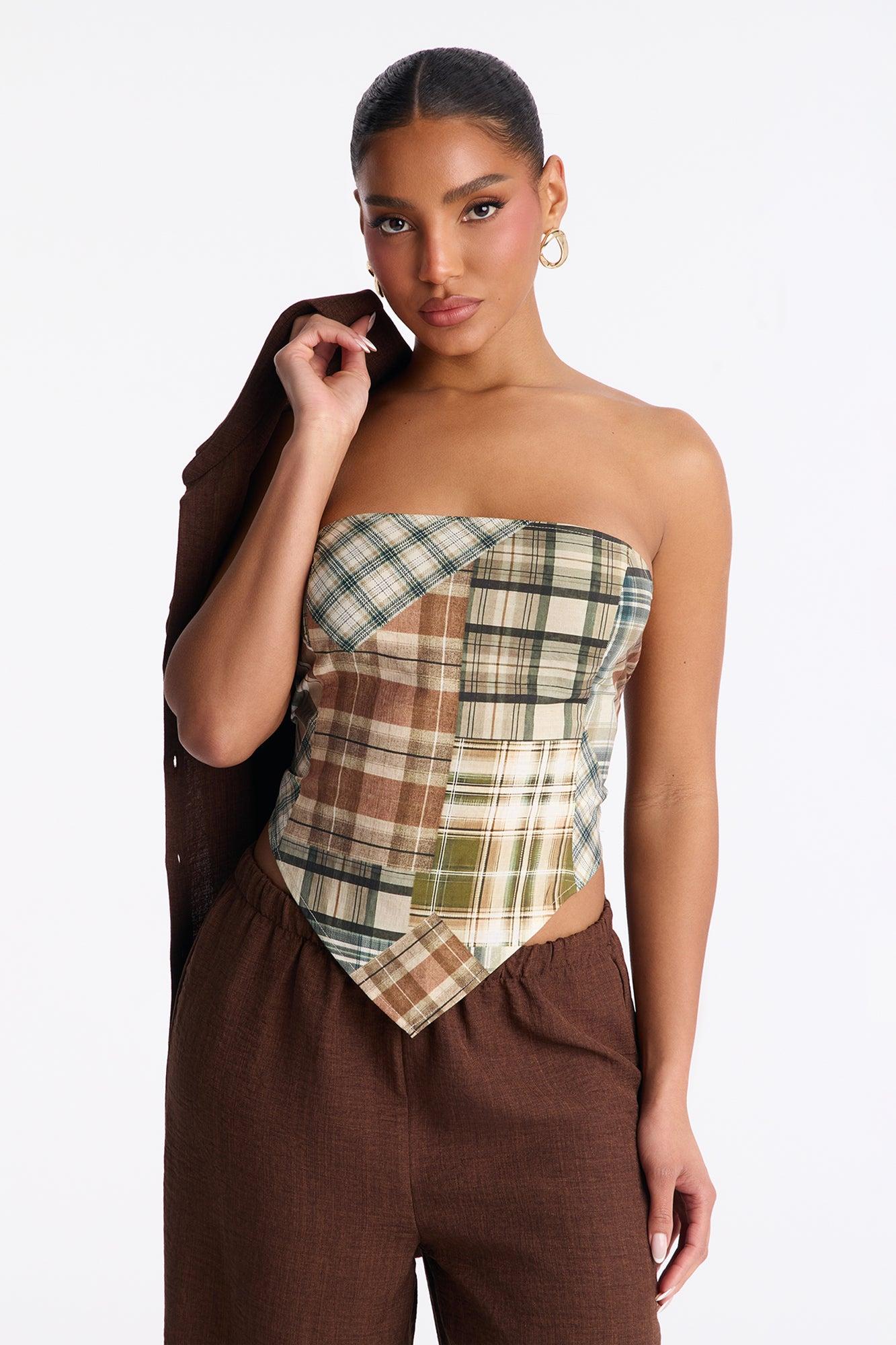 Linen-Blend Strapless Scarf Top