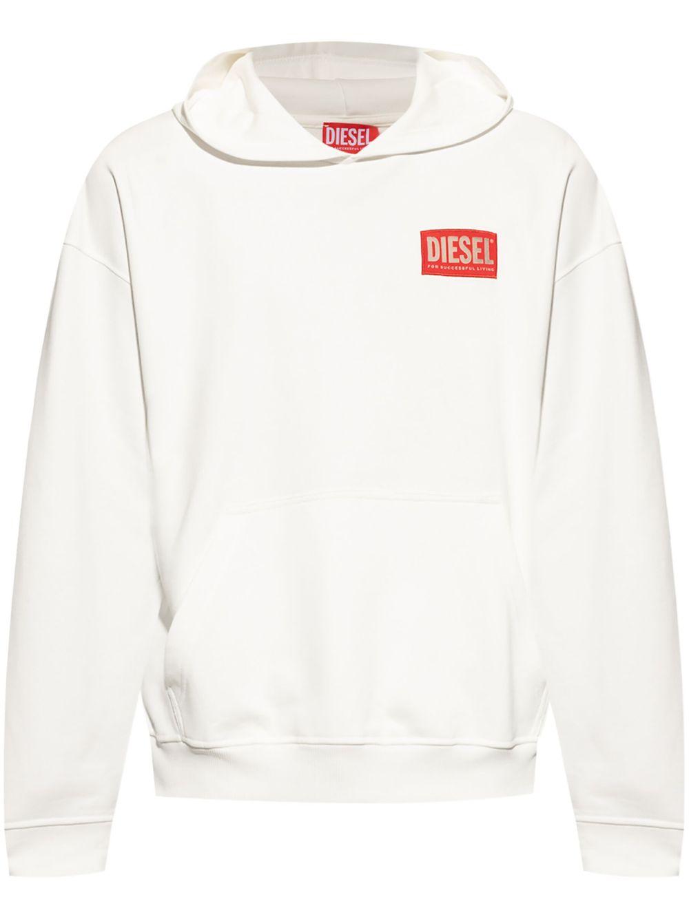 Diesel S-Boxt hood | White | white | cotton | jersey texture | logo patch at the chest | classic hood | long sleeves | front pouch pocket | ribbed cuffs and hem | Cotton | Hoodies | Sweatshirts & Knitwear | Clothing | Men