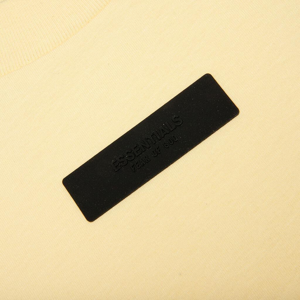 The Fear of God Essentials S/S Tee is constructed with a core cotton jersey. The rib-knit crewneck fits relaxed in the body with dropped shoulders. New minimalist branding is seen in the rubberized Essentials Fear of God black bar on the center front. Another Fear of God rubberized label is at the back collar to complete the design. ALL SALES ARE FINAL. THIS GARMENT HAS AN OVERSIZED FIT; IT IS RECOMMENDED TO SIZE DOWN FOR A TRUE-TO-SIZE FIT. 100% Cotton 220 GSM Jersey Crew neckline Relaxed fit Dropped shoulders Ribbed collar Rubberized labels Style No: 125SP244191F