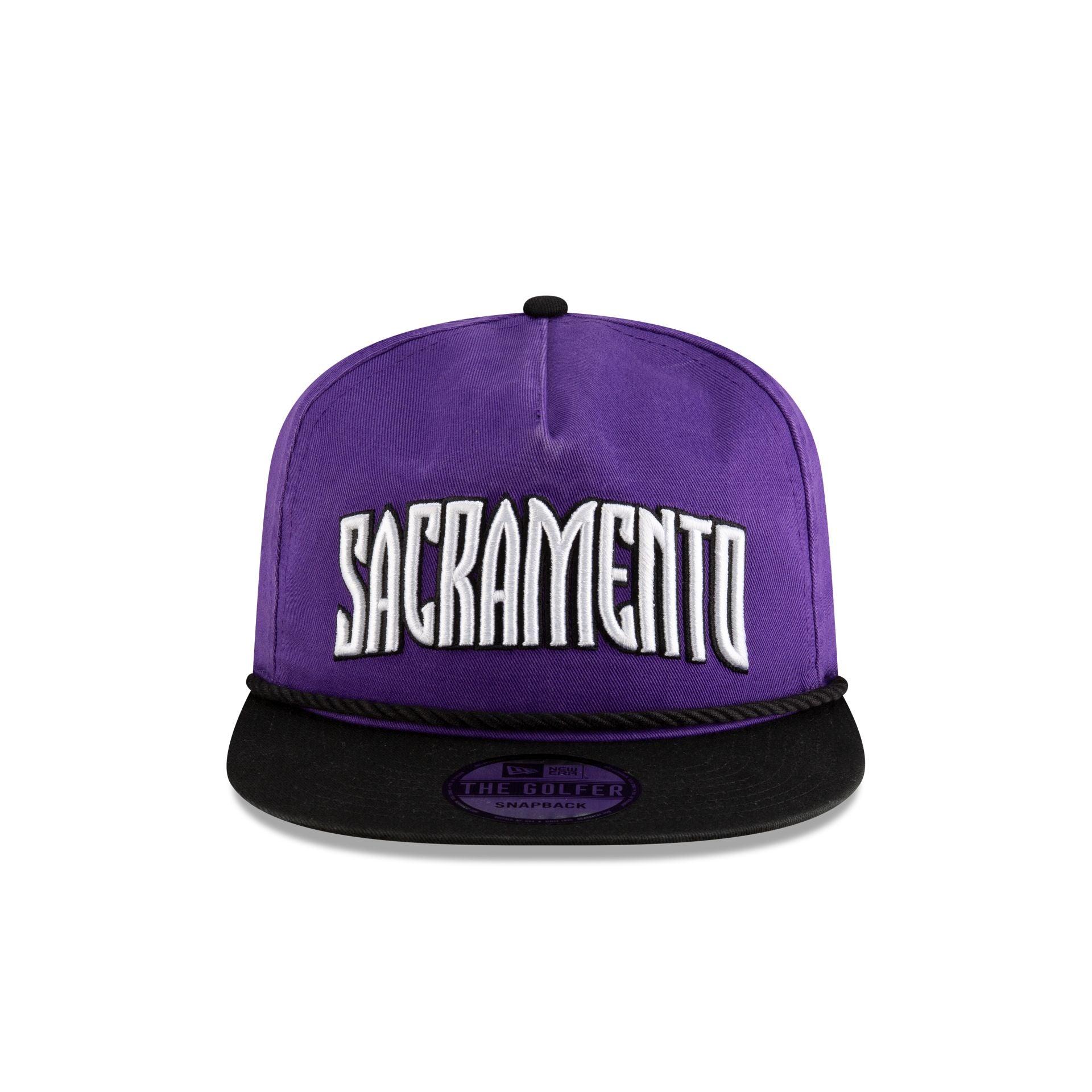 The Sacramento Kings Classic Edition Golfer features an embroidered Kings logo at the front panels with a team logo at the right-wear side. Additional details include a snapback closure at the rear and a gray undervisor.