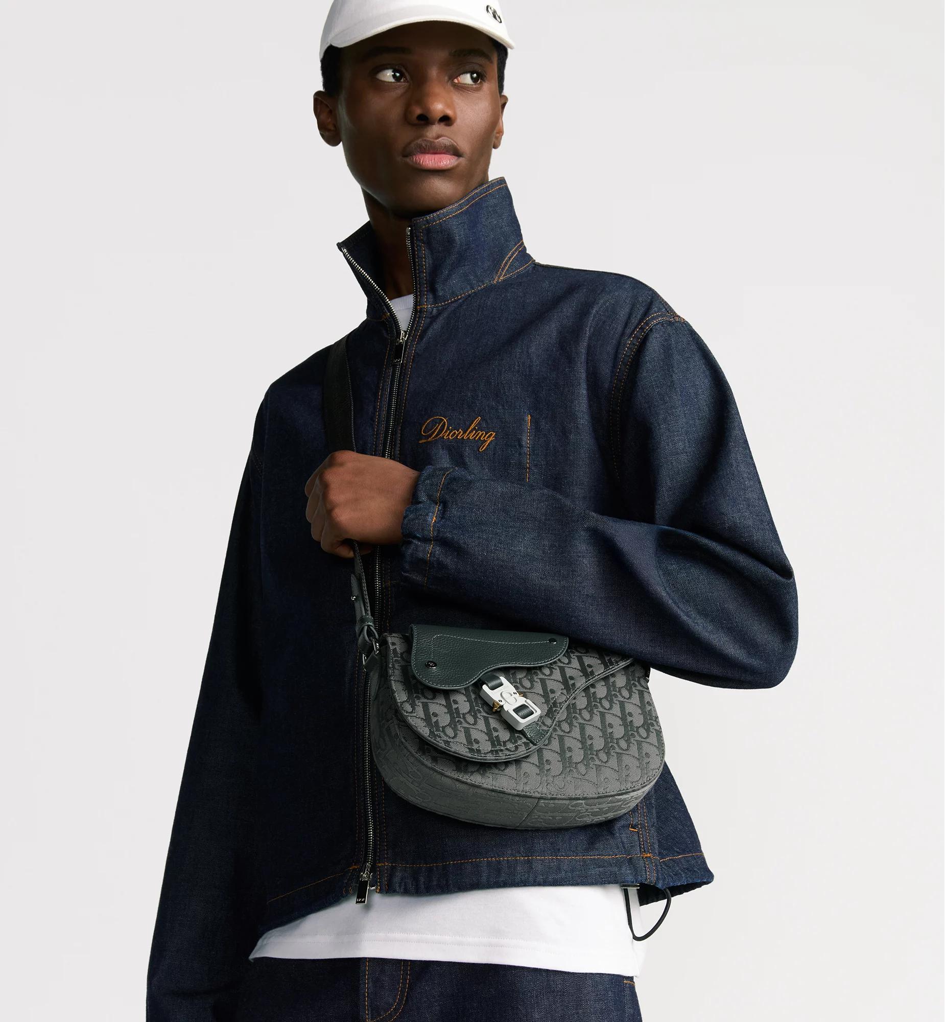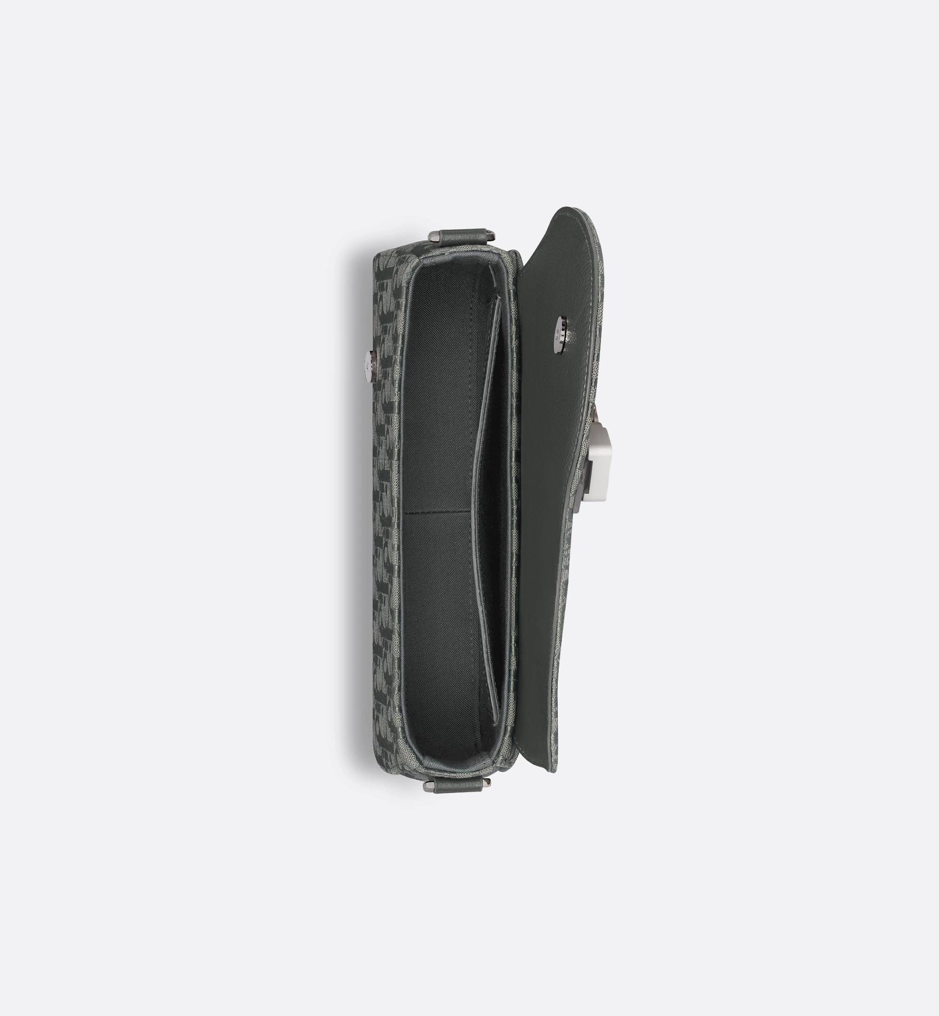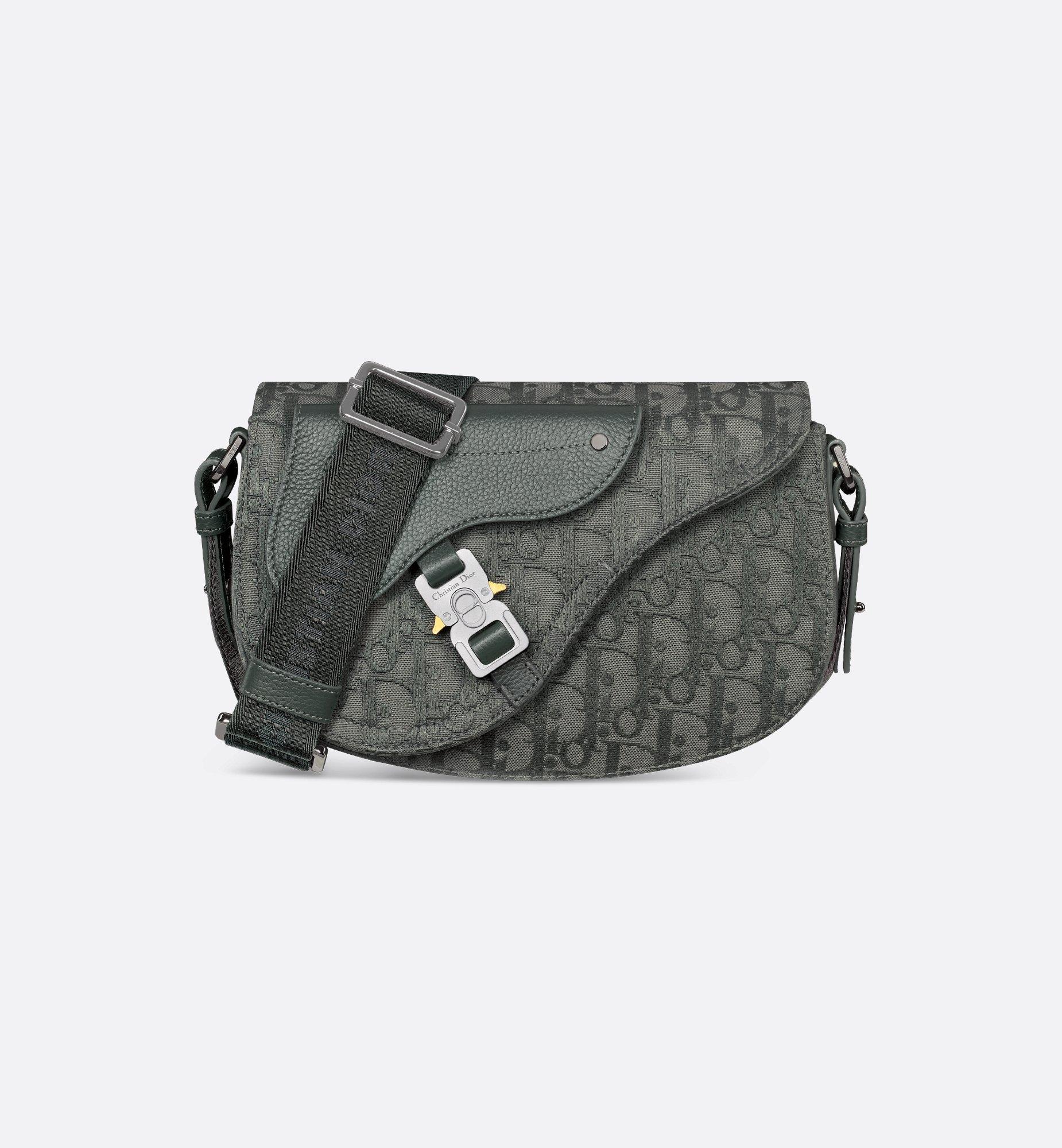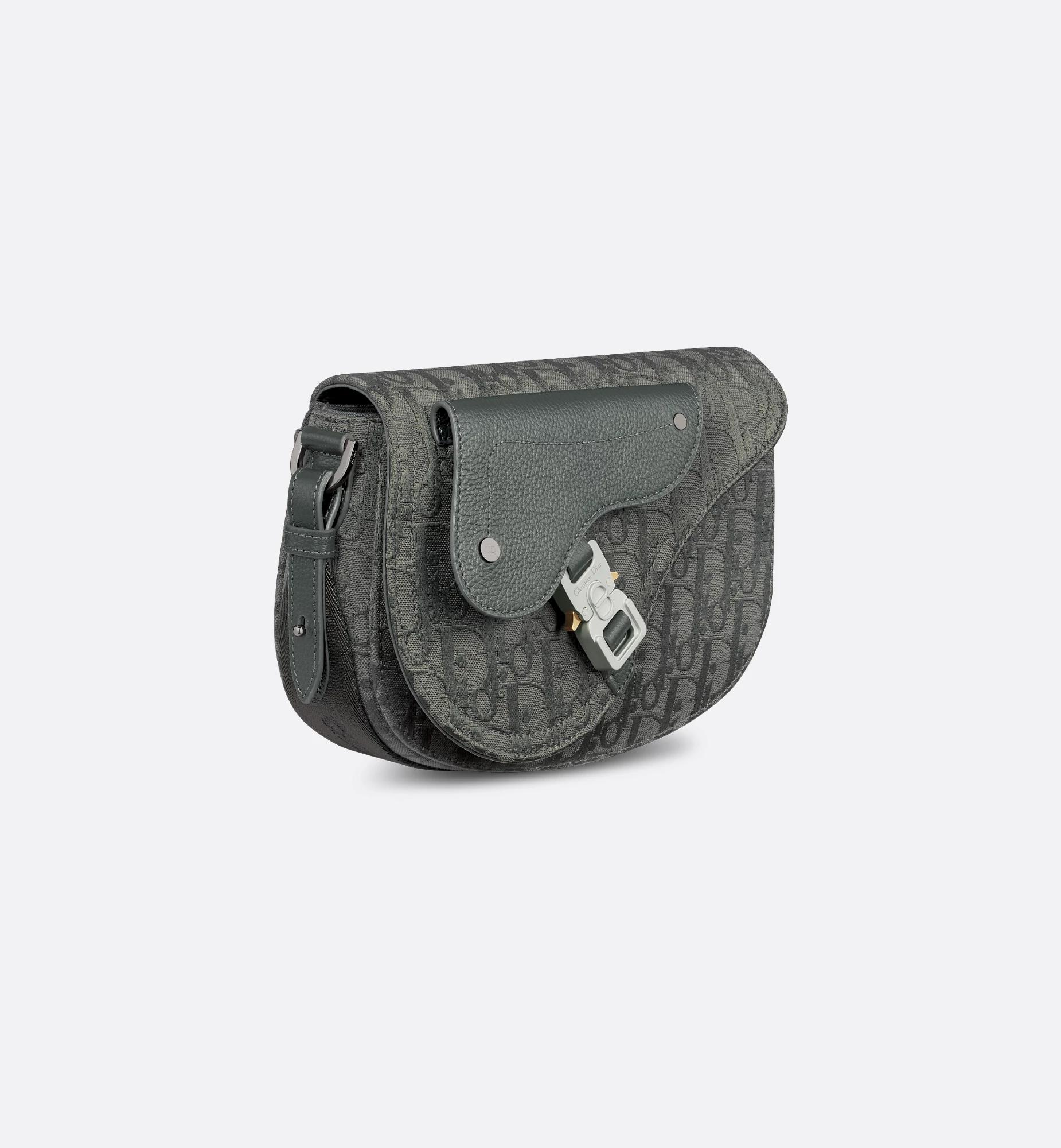 The Saddle messenger bag is a compact and modern creation. Constructed in anthracite gray Dior Oblique canvas with a subtle satin effect, it features an anthracite gray grained calfskin Saddle flap enhanced by a contrasting aluminum buckle. Its spacious interior has a slip pocket to house all the essentials, while the adjustable Christian Dior nylon jacquard strap allows the bag to be worn over the shoulder or crossbody. Main composition: cotton, technical fabric and calfskin. Technical fabric, cotton and calfskin lining. Main compartment with magnetic Saddle flap. Front slip pocket with Saddle flap and CD aluminum buckle. Interior slip pocket. Adjustable Christian Dior nylon jacquard shoulder strap. Embossed Dior signature on the interior. Dust bag included. Made in Italy
