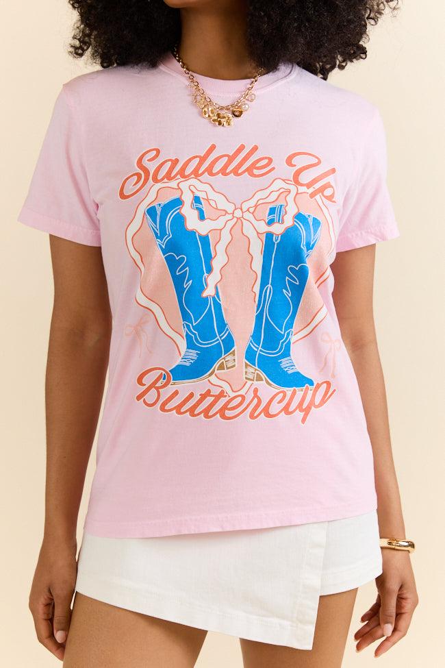 Details Light pink t-shirt with bow heart cowboy boot design Crew neckline Short sleeves Material and Care Comfort Color Tee 100% cotton For best results, wash inside out on a gentle cycle with cold or lukewarm water. Tumble dry low or hang to dry to keep your tee looking fab! Size and Fit Size Small approximate measurements. Relaxed fit, size up 2 sizes for oversized fit Chest Width: 17.25” Body Length: 25.6”