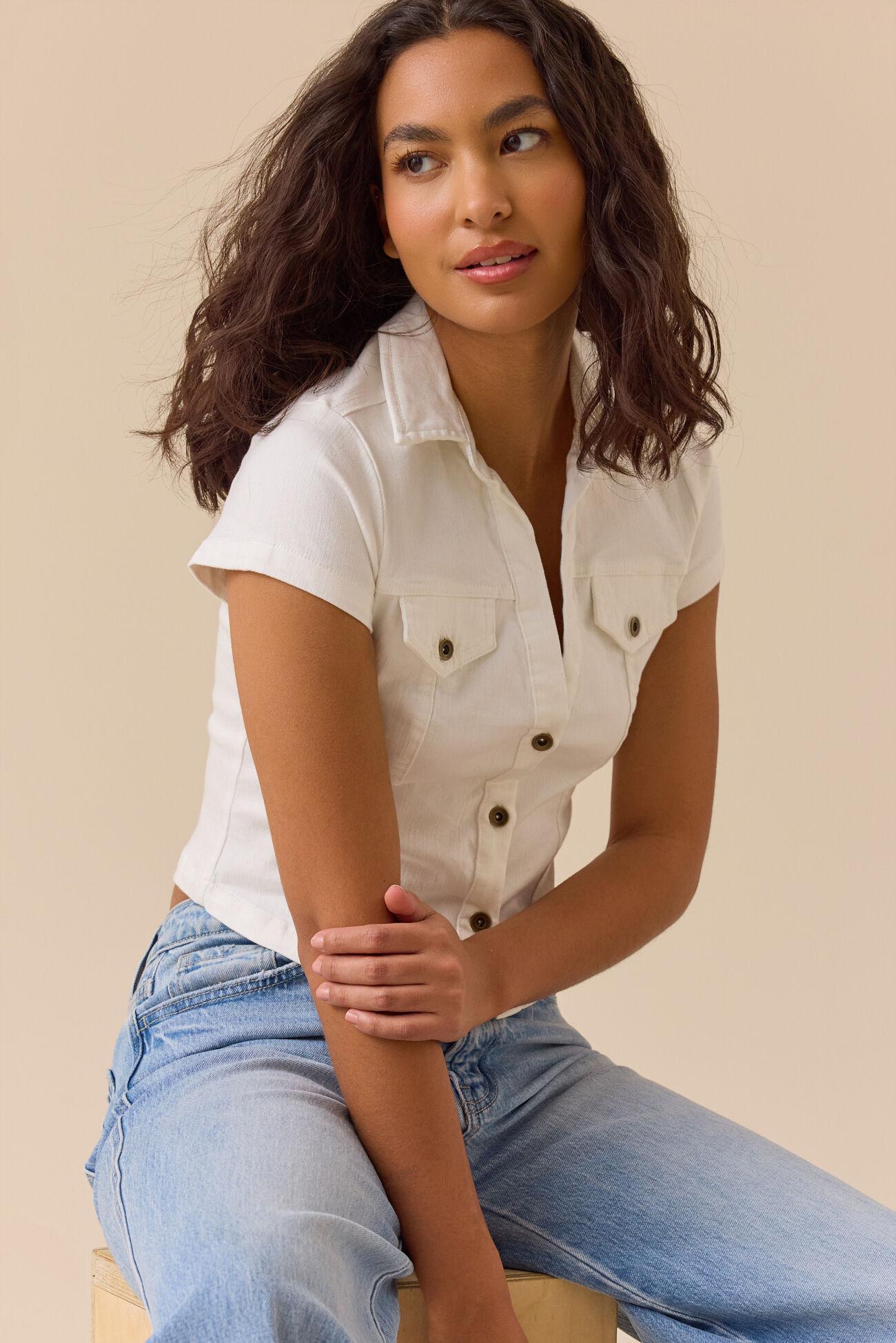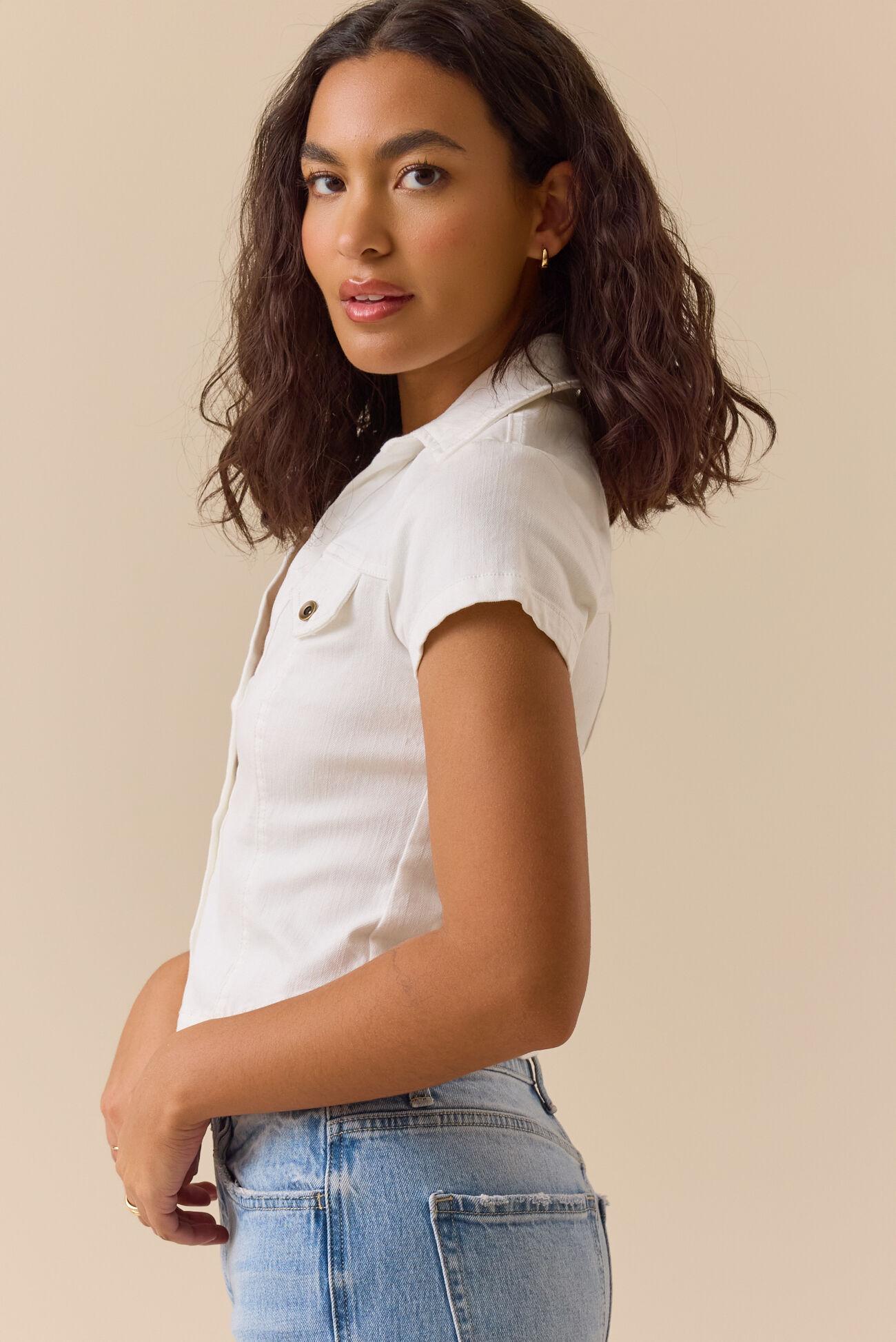 Your denim collection just got a major upgrade. This short sleeve button-up brings a modern edge to a classic fabric. It’s the perfect mix of structured and sweet, giving you an instant outfit boost that feels totally fresh and ready for anything.