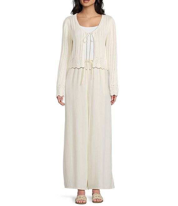 Sadie & Sage Crochet Long Sleeve Front Tie Cardigan