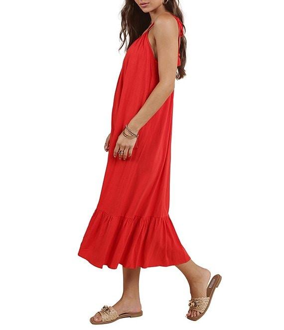 Sadie & Sage Linen Blend Scoop Neck & Back Flowy Tassel Detailed Midi Dress