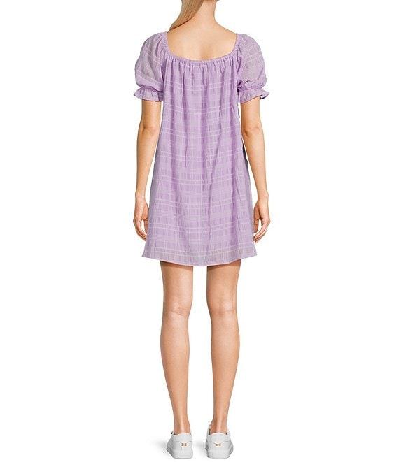 Sadie & Sage Sheer Textured Drawstring Scoop Neck Short Ruffle Sleeve Dress