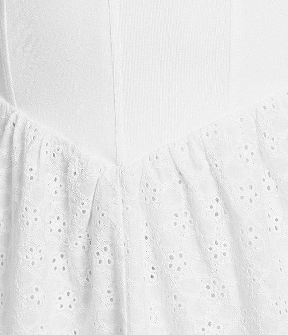 Sadie & Sage Sleeveless Jersey Eyelet Mixed Media Corset Mini Dress