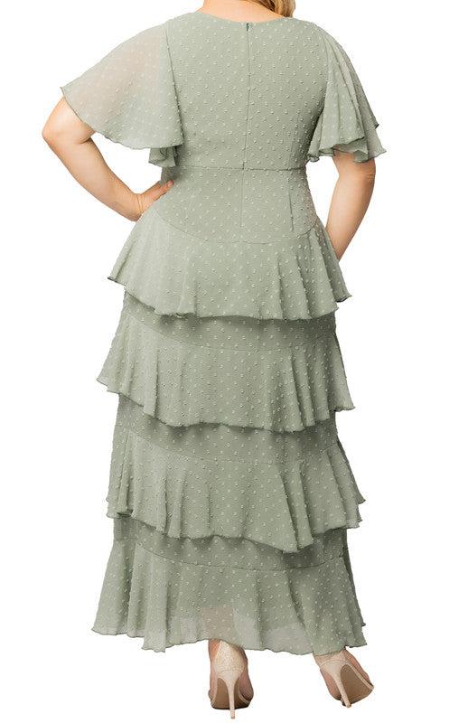 The Tour de Flounce Evening Gown is a special occasion formal dress with gorgeous flounce details. This elegant floor-length evening dress is perfect for spring or summer formal events, cocktail parties, and is the perfect choice for a wedding guest dress or mother of the bride / groom gown.