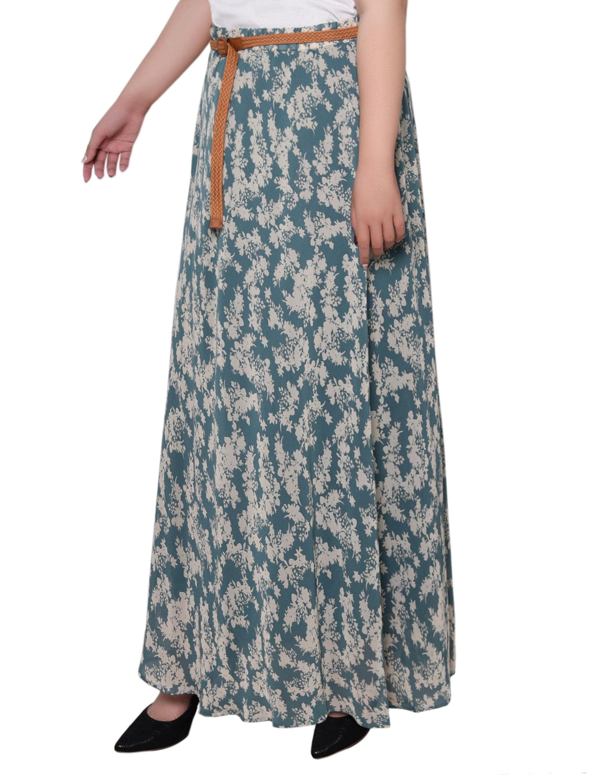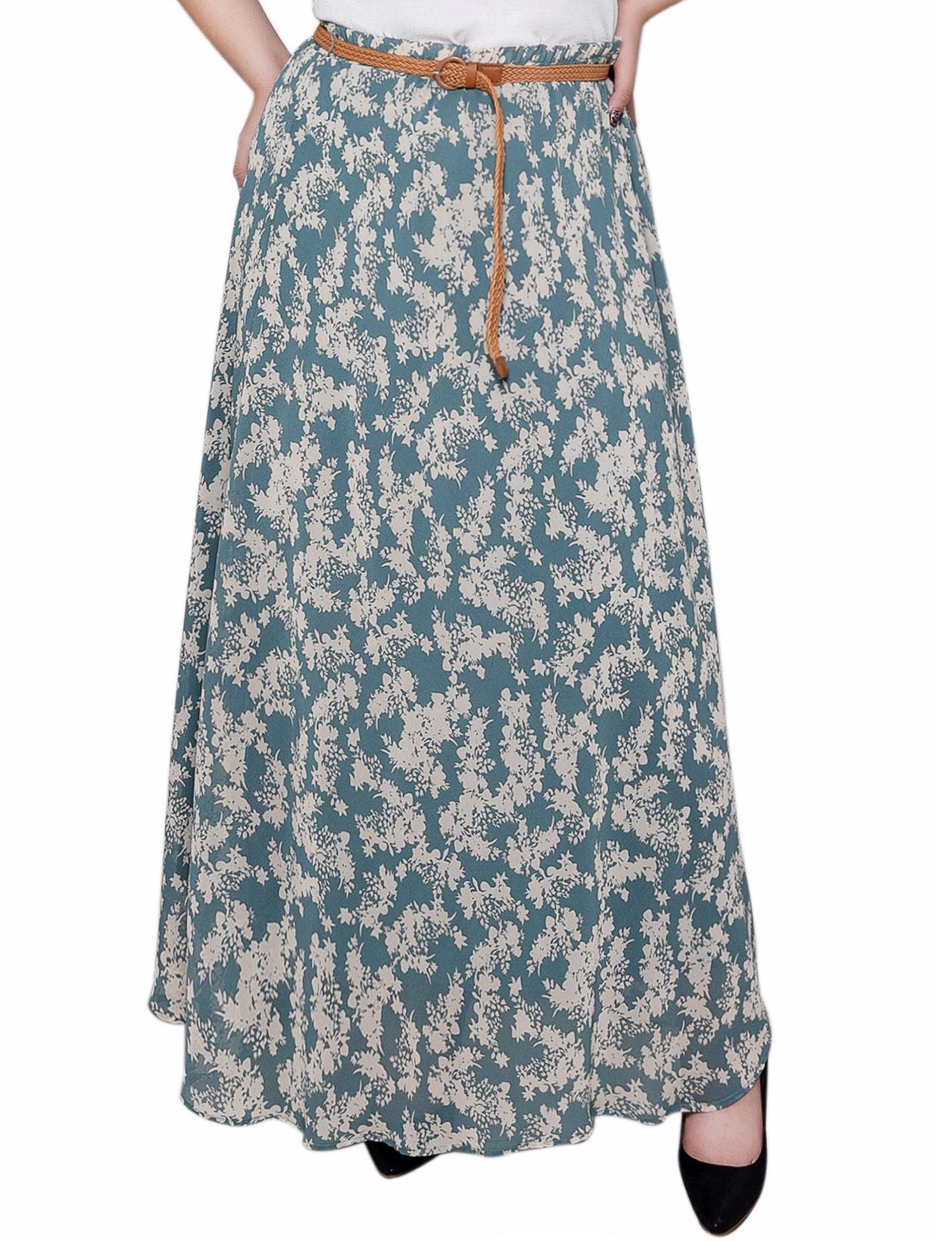 Sage Ivory Floral Chiffon Maxi Skirt - Plus